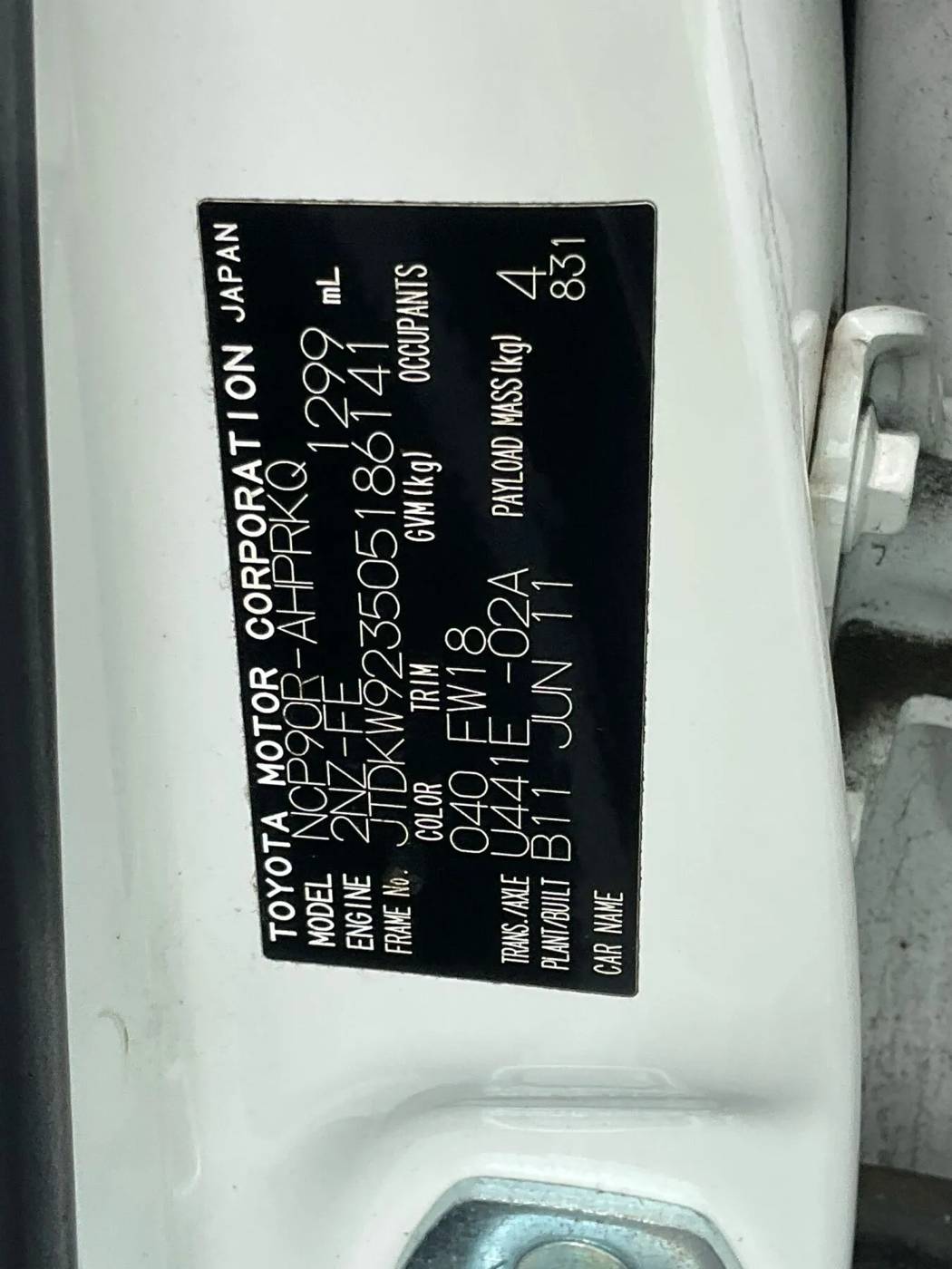 ОписаниеNCP90R MY11 YR Hatchback 5dr Auto 4sp 1.3i