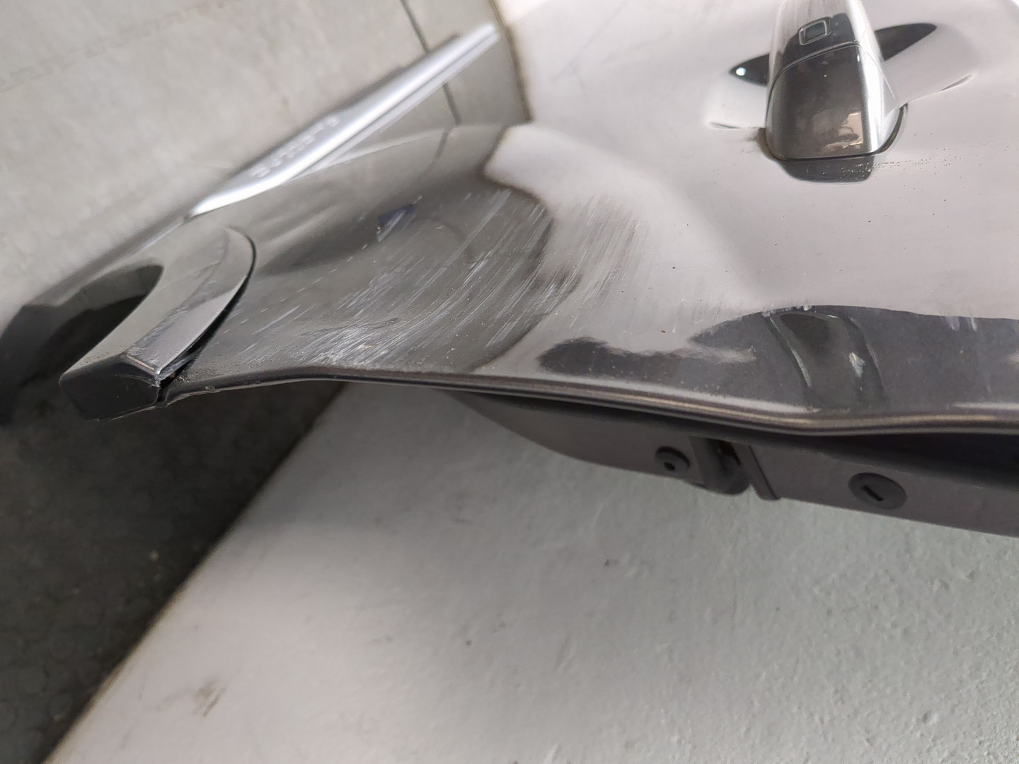 Состояние детали хорошее. Следы эксплуатации, цвет черный. Крепление целое, есть царапины и вмятины. Ремонт царапин и вмятин