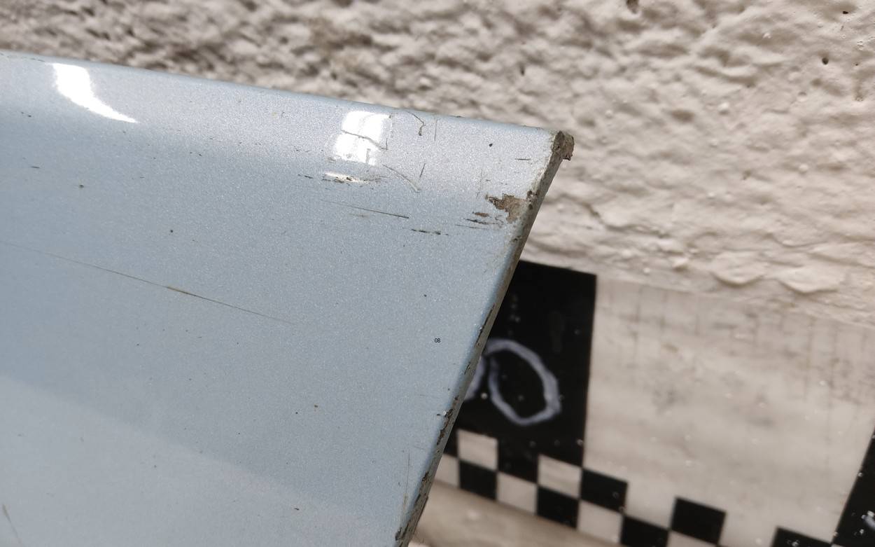 Состояние детали хорошее. Белого цвета, скол ЛКП. Царапины на накладке. Небольшие вмятины. Потребуется незначительный ремонт
