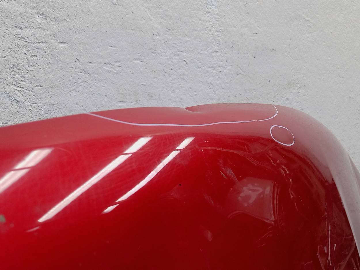 Состояние детали хорошее. Красного цвета, скол ЛКП. Небольшие вмятины. Потребуется незначительный ремонт