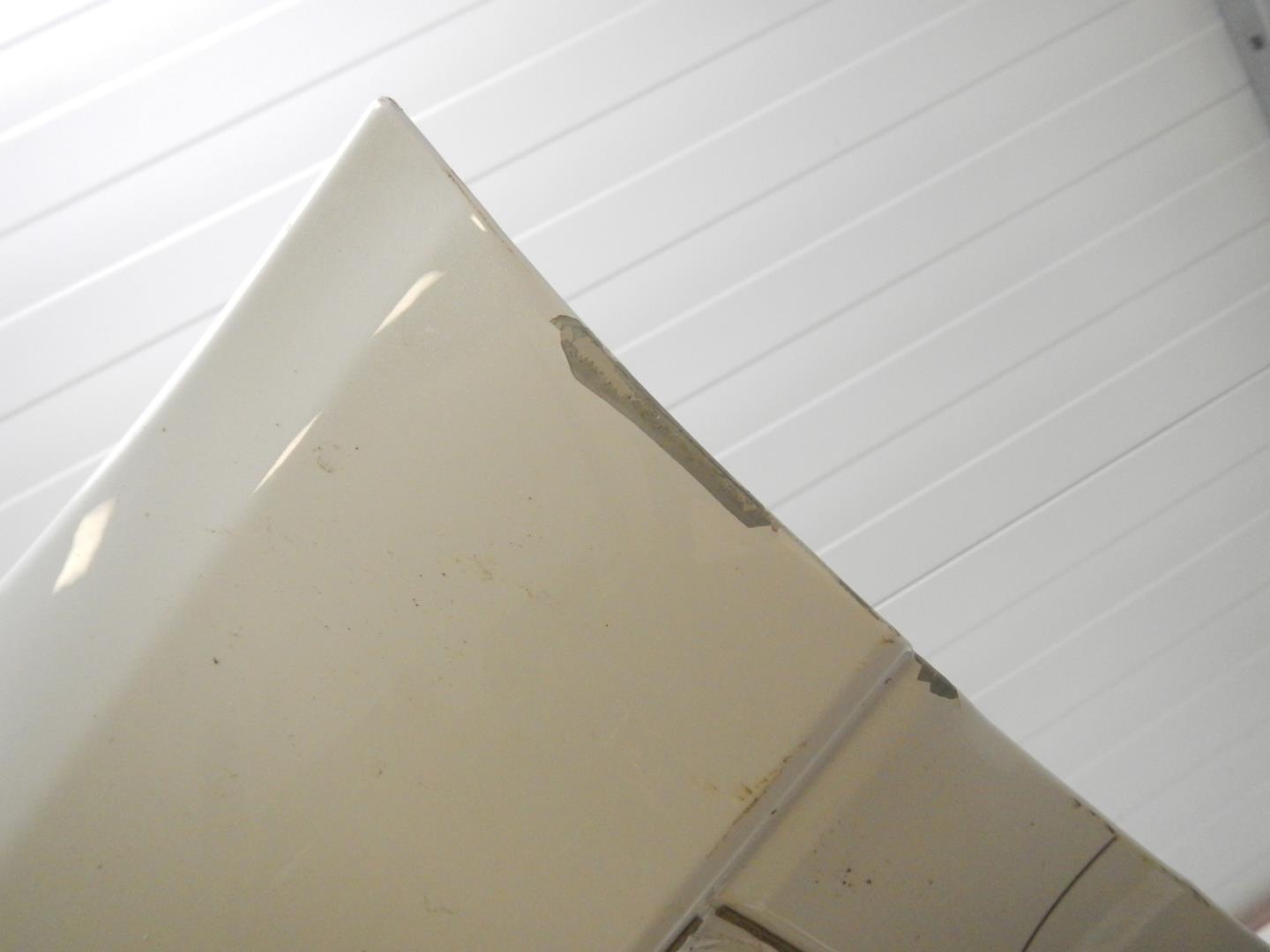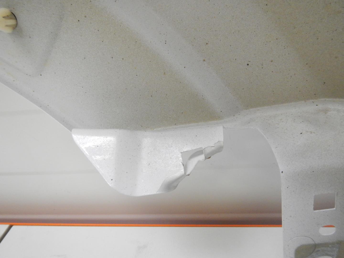 Состояние детали хорошее. Цвет белый, есть потёртости, небольшая трещина на тарце. Дефект одного крепления , 2 отсутствуют. Потребуется ремонт