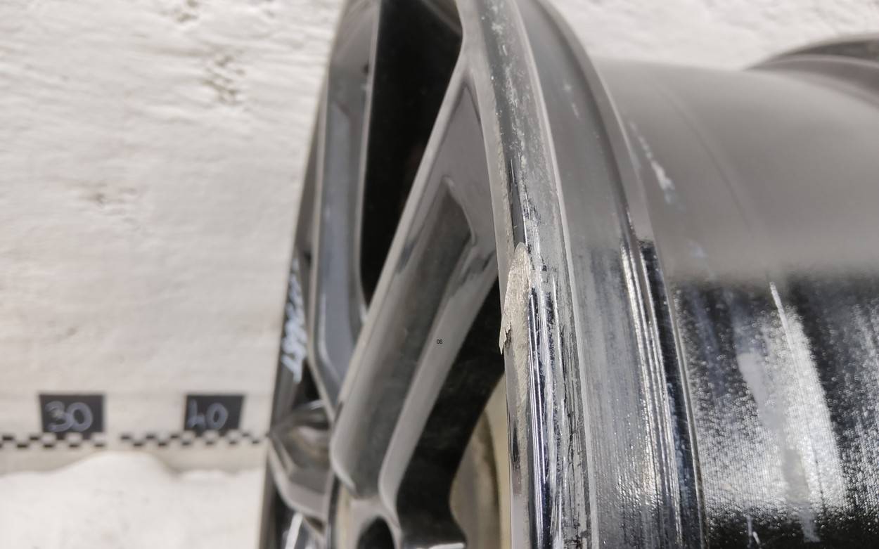 Состояние детали хорошее. С датчиком TPMS, скол ЛКП. Небольшие царапины по внешнему ободу. Потребуется незначительный ремонт
