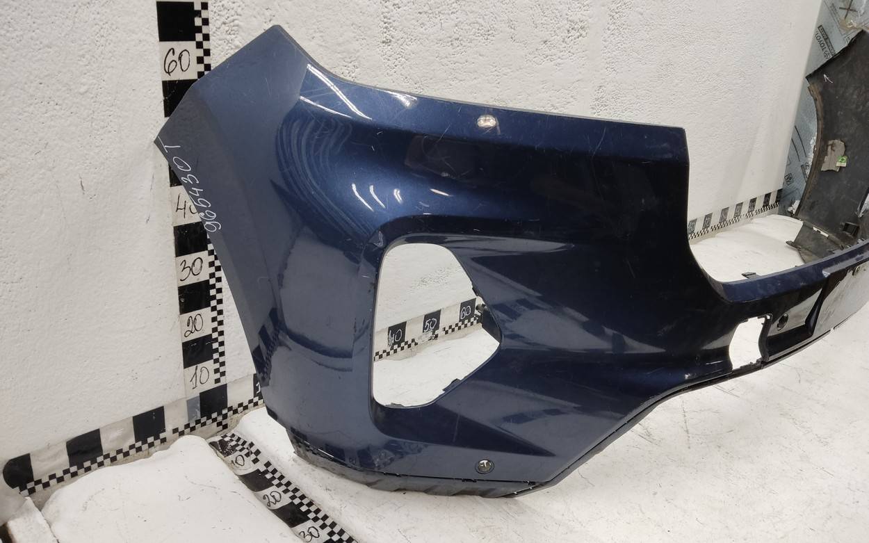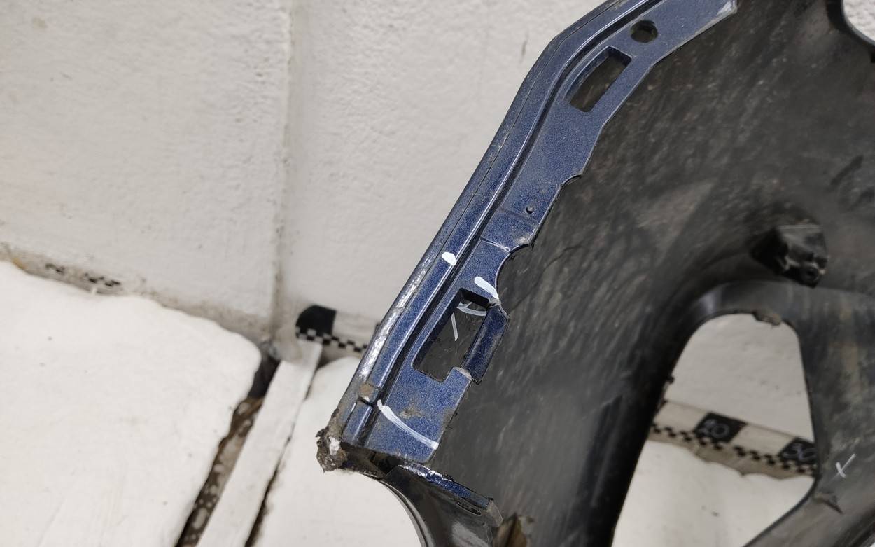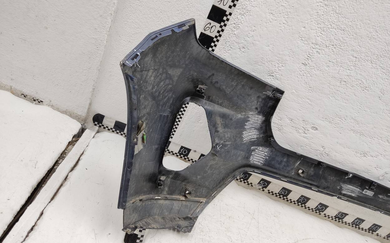 Состояние детали хорошее. Тёмно-синего цвета под парктроники. Потёртости. Сломано два крепления, отсутствует одно под левую ПТФ, дефект трех на фото. Потребуется незначительный ремонт