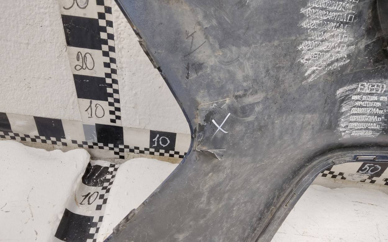 Состояние детали хорошее. Тёмно-синего цвета под парктроники. Потёртости. Сломано два крепления, отсутствует одно под левую ПТФ, дефект трех на фото. Потребуется незначительный ремонт Бампер передний для Chery Exceed VX 2021>