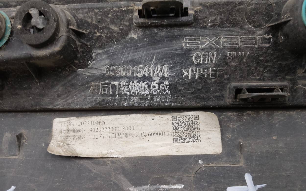 Состояние детали плохое. Отсутствует фрагмент пластика на торце и девять креплений, одно впаяно. Трещина. Молдинг в плёнке. Потребуется ремонт Накладка двери задней правой для Chery Exeed RX 2022>