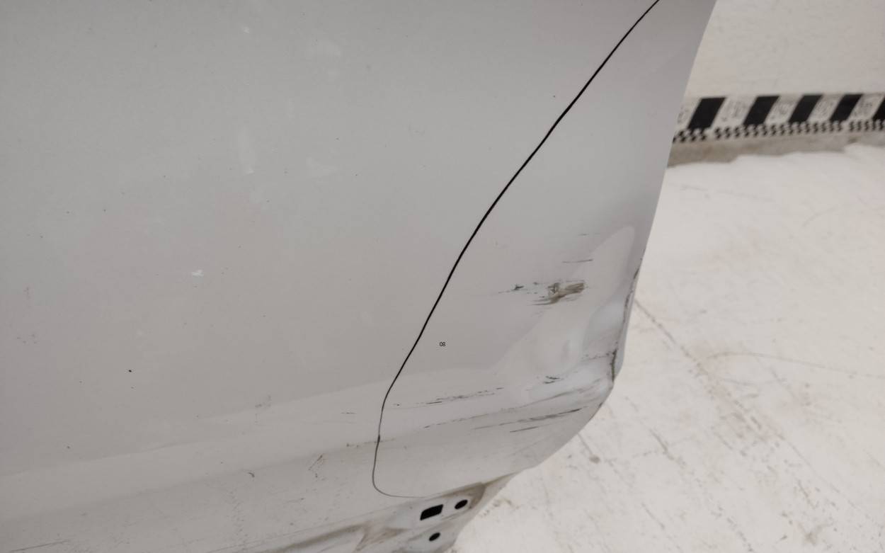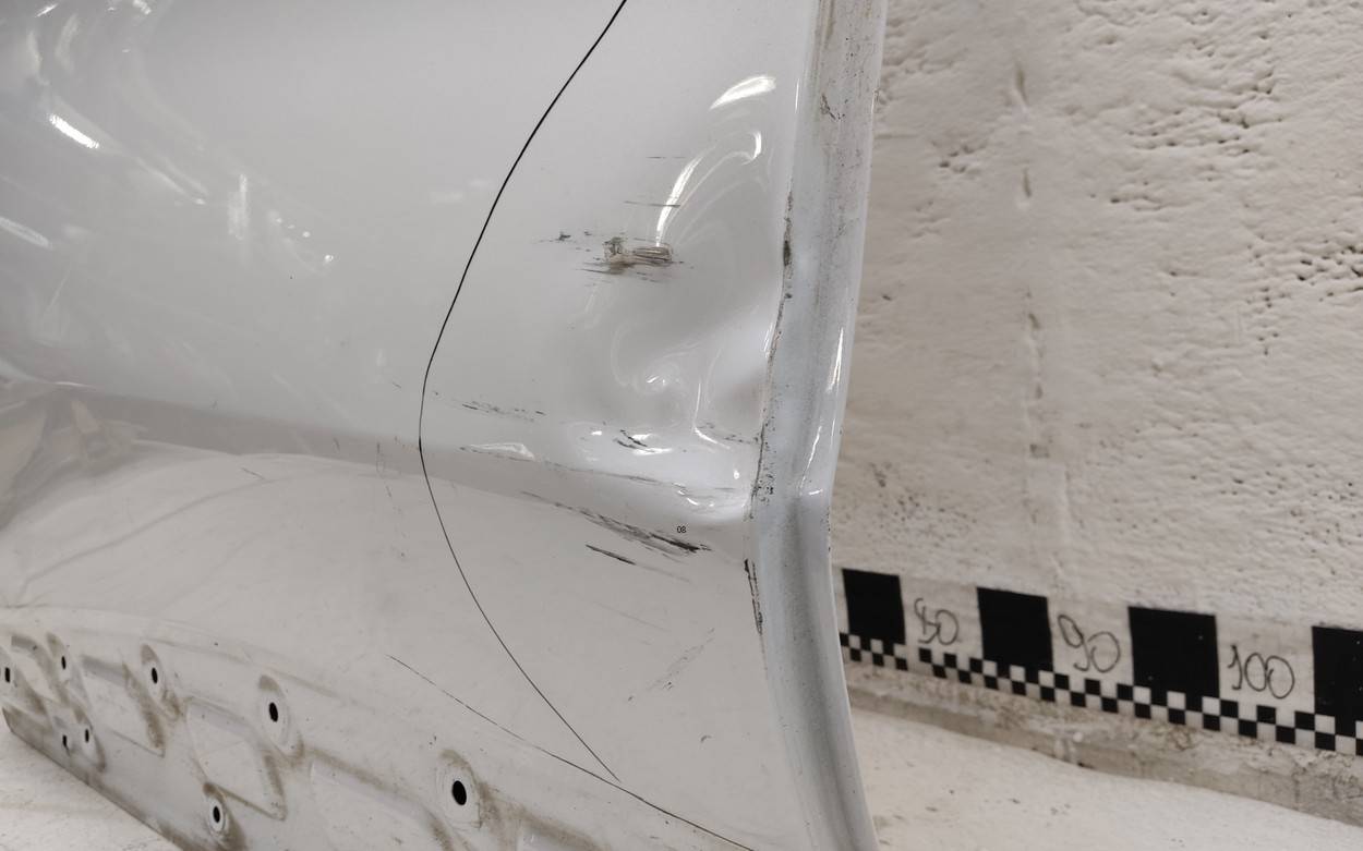 Состояние детали хорошее. Белого цвета, потёртости, царапины. Царапина с вмятиной на плоскости под ручкой двери, незначительный дефект внутреннего каркаса в этом же месте. Потребуется ремонт и покраска