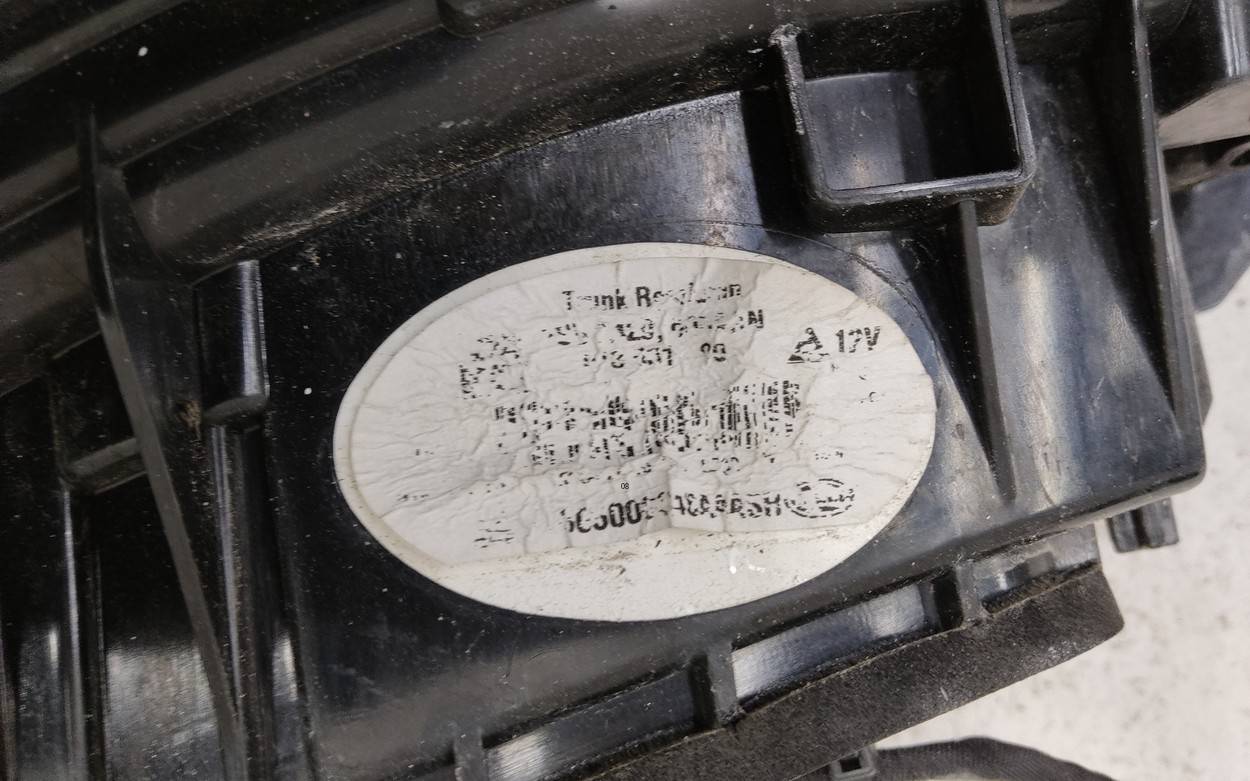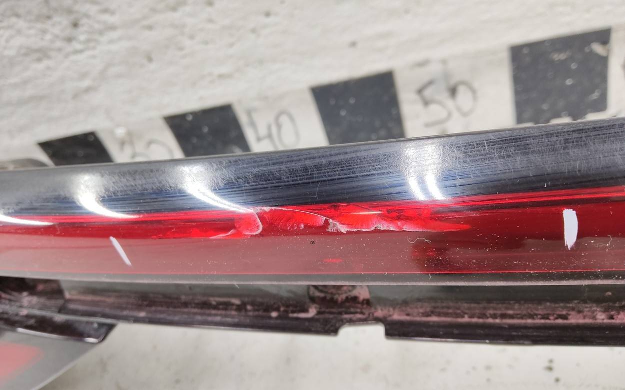 Состояние детали плохое. Следы эксплуатации, потёртости. Трещины, отсутствует небольшой фрагмент корпуса, в районе крепления номерного знака, крепления целые. Ремонт корпуса