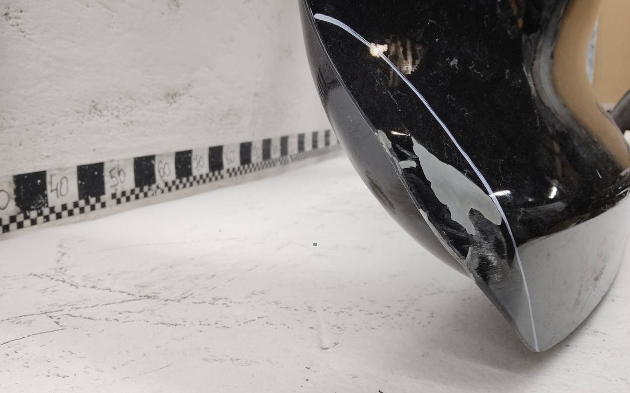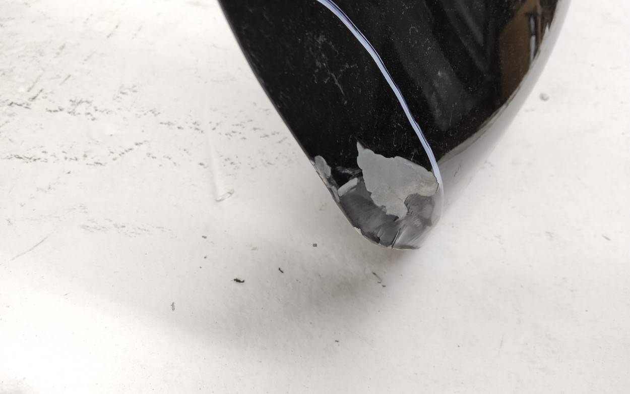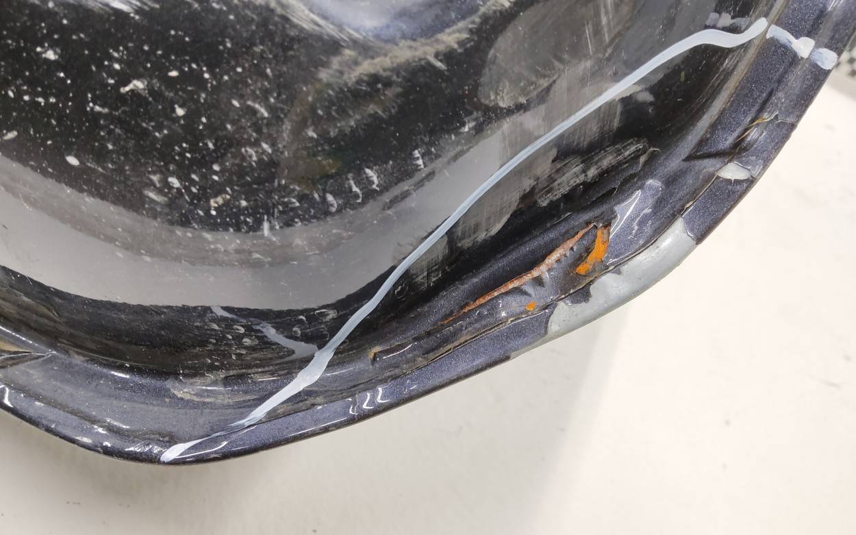 Состояние детали хорошее. Тёмно-серого цвета, скол ЛКП. Небольшая вмятина, дефект на внутренней поверхности. Потребуется незначительный ремонт
