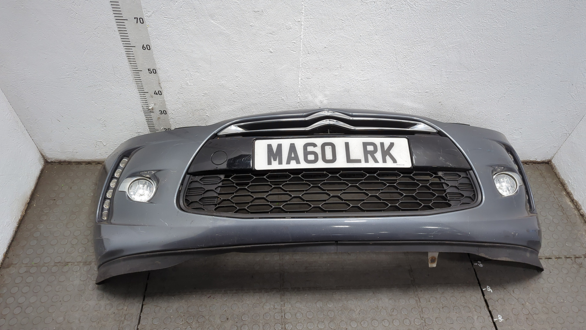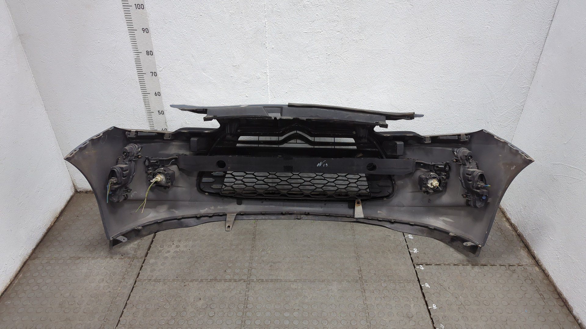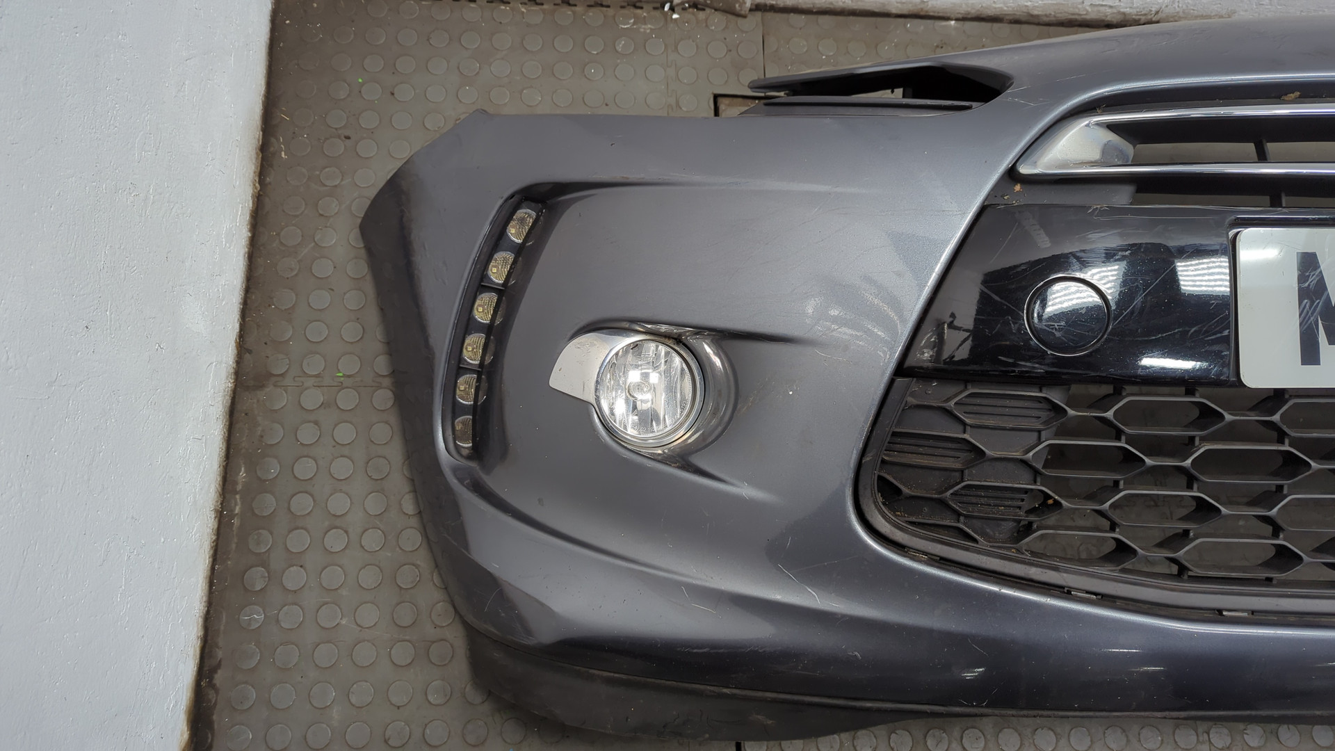Бампер передний Citroen ds3 сломано 4 верхних крепления два боковых 1 нижнее небольшая трещина в районе крепления решетки слева красного цвета б/у оригинал 2,3 кг . . .