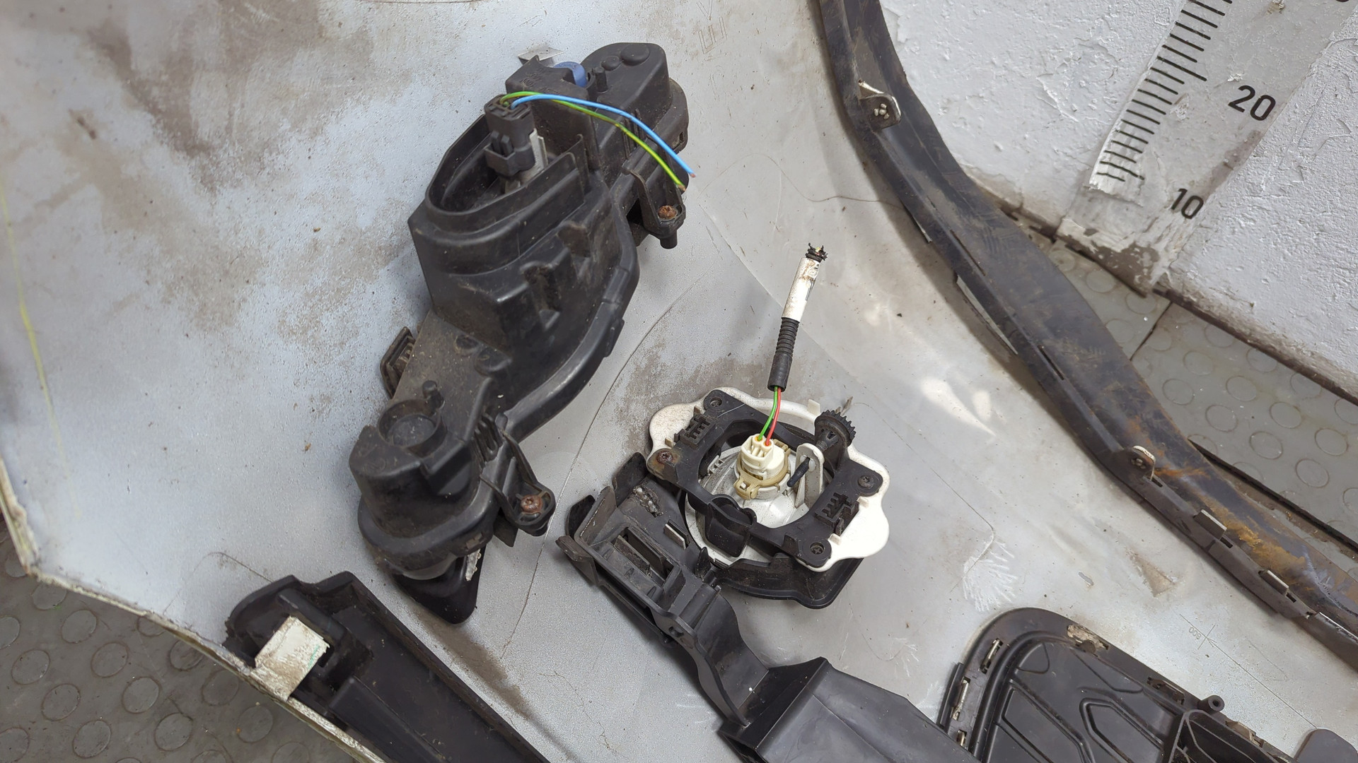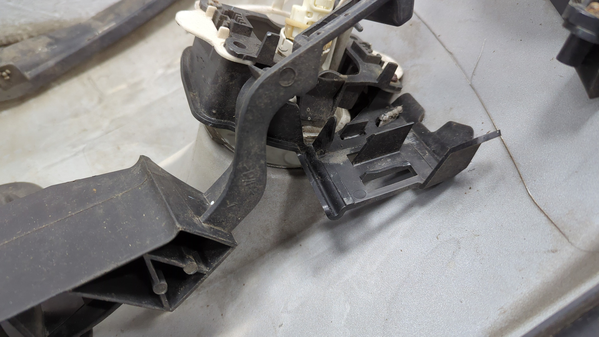 Состояние детали хорошее. Потёртость, незначительный дефект пластика на фото. Крепления целые. Ремонтопригодно