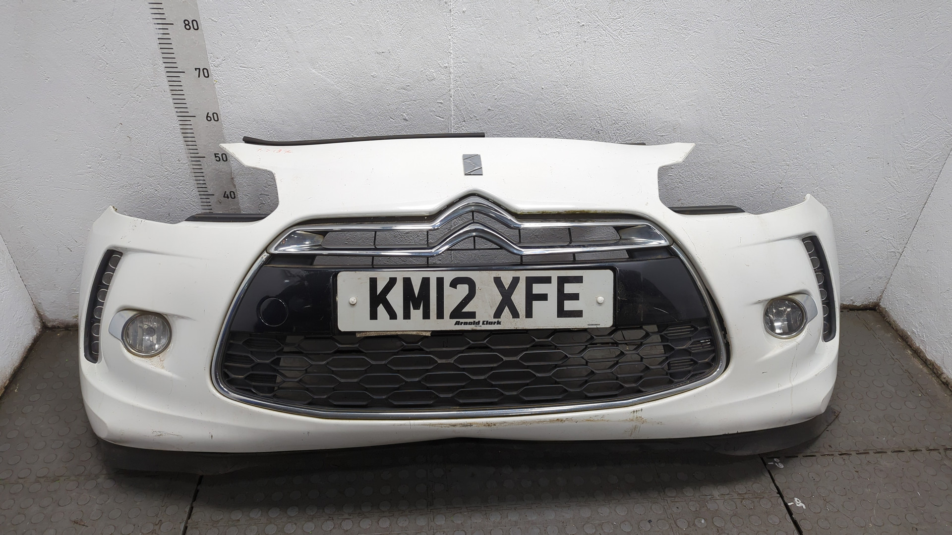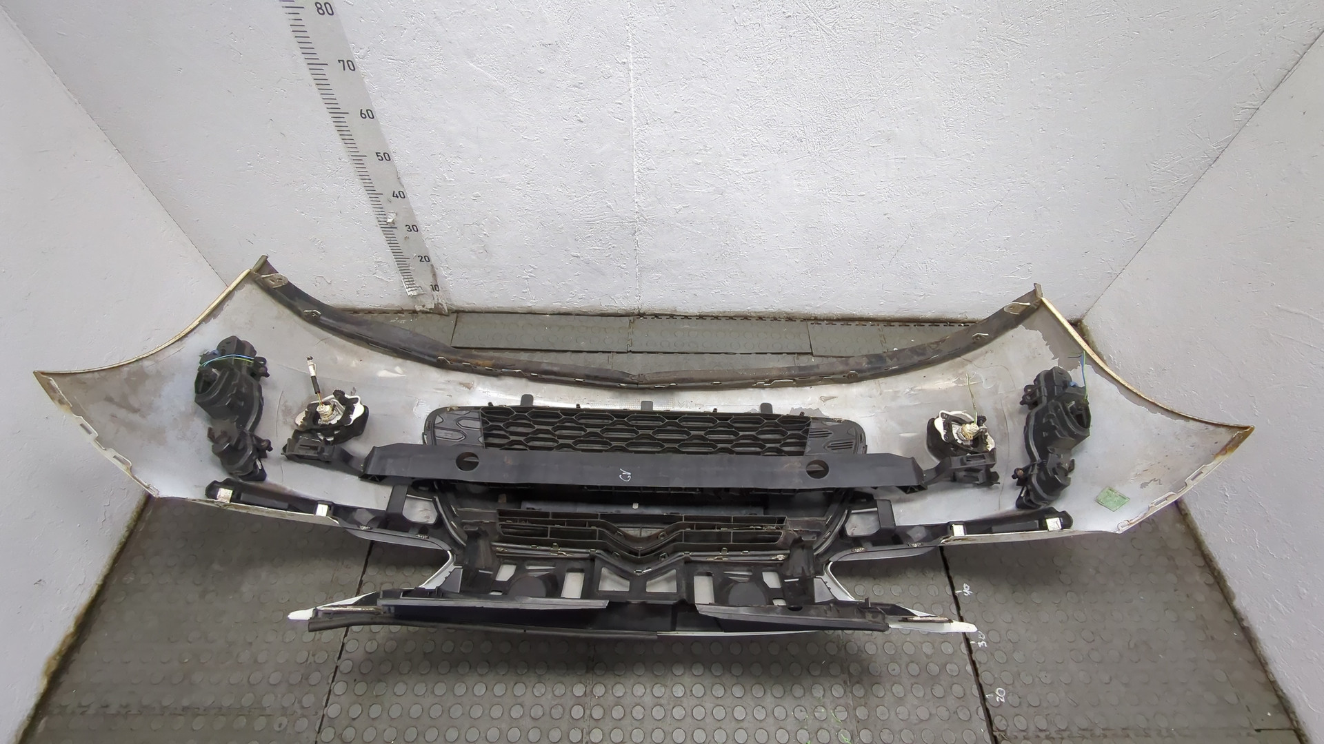Бампер передний Citroen ds3 сломано 4 верхних крепления два боковых 1 нижнее небольшая трещина в районе крепления решетки слева красного цвета б/у оригинал 2,3 кг . . .