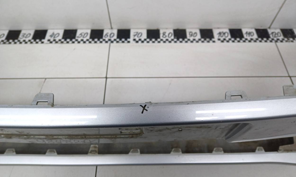 Состояние детали удовлетворительное. Серебристого цвета, потертости, царапинки. Отсутствует фрагмент крепления слева, сломано одно крепление решетки радиатора. Потребуется ремонт и покраска