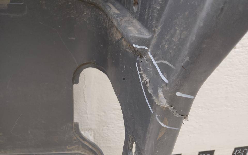 Состояние детали удовлетворительное. Следы эксплуатации. Трещины пластика с левой стороны и с правой стороны снизу, крепления на месте. Потребуется ремонт