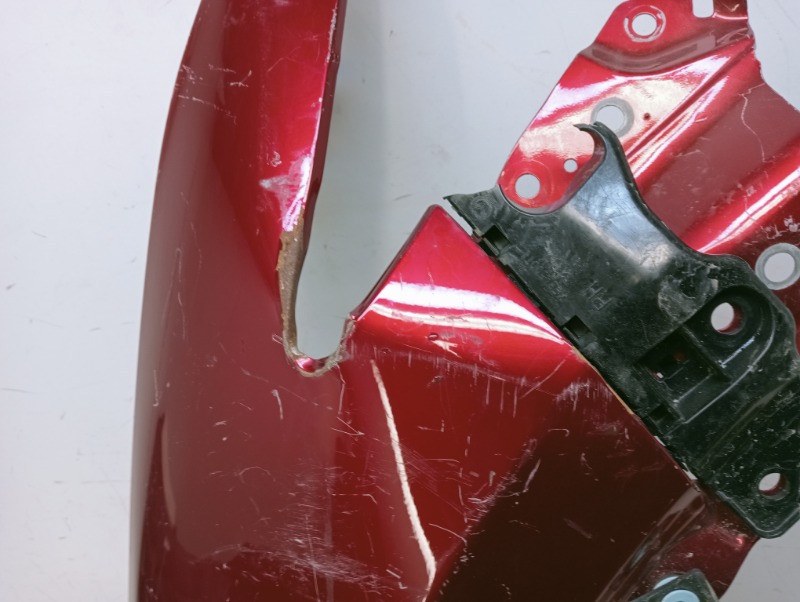 Состояние детали удовлетворительное. Цвет крышки красный, следы эксплуатации. Вмятины в правой нижней части крышки, вмятина в левой нижней части крышки, тычок в верхней невидимой части крышки, вмятина на внутреннем каркасе слева. Потребуется ремонт