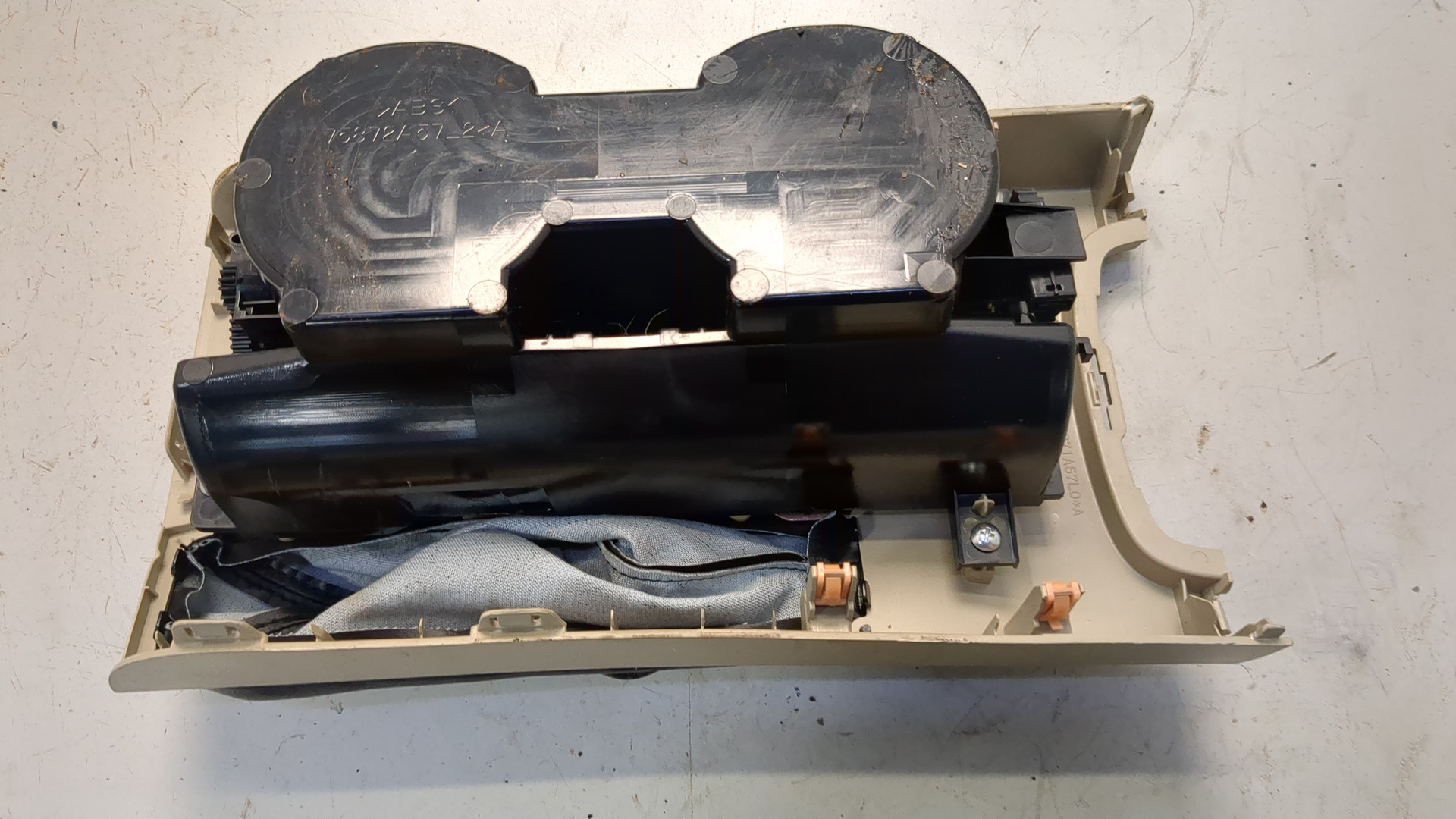 Состояние детали удовлетворительное. Белого цвета, потертости, царапины. Дефект одного крепления. Потребуется ремонт и покраска
