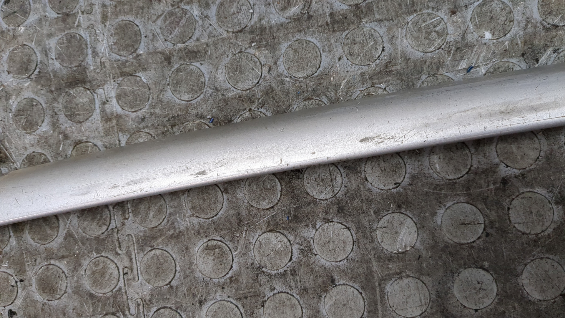 Состояние детали удовлетворительное. В сборе с нижней частью и накладкой, серебристый цвет, потёртости. Небольшая трещина с левой стороны, в районе соединения с нижней частью, вмятина с левой стороны, крепления целые. Ремонт трещины