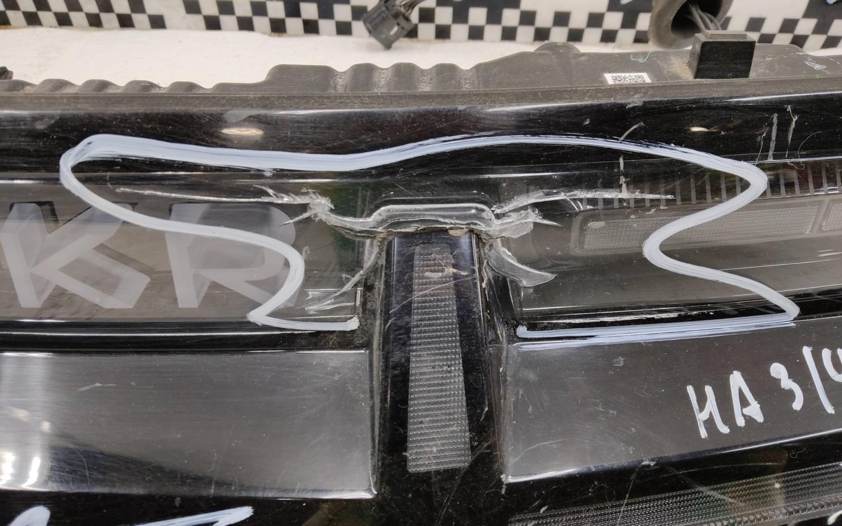 Состояние детали удовлетворительное. Следы эксплуатации, царапины и потёртости. Сколы.. Четыре крепления сломаны. Одно крепление с дефектом. Корпус пробит. Трещины на корпусе. Блок есть. Без плёнки. Два скола на стекле, один тычок на пластике. Трещина на стекле.. Требуется ремонт