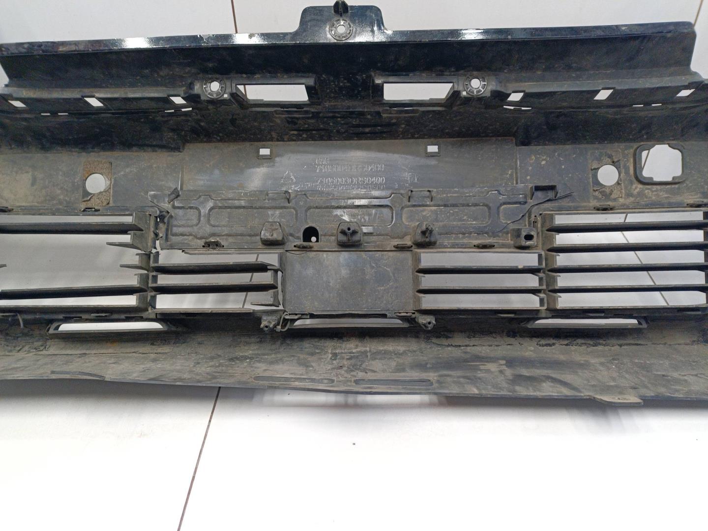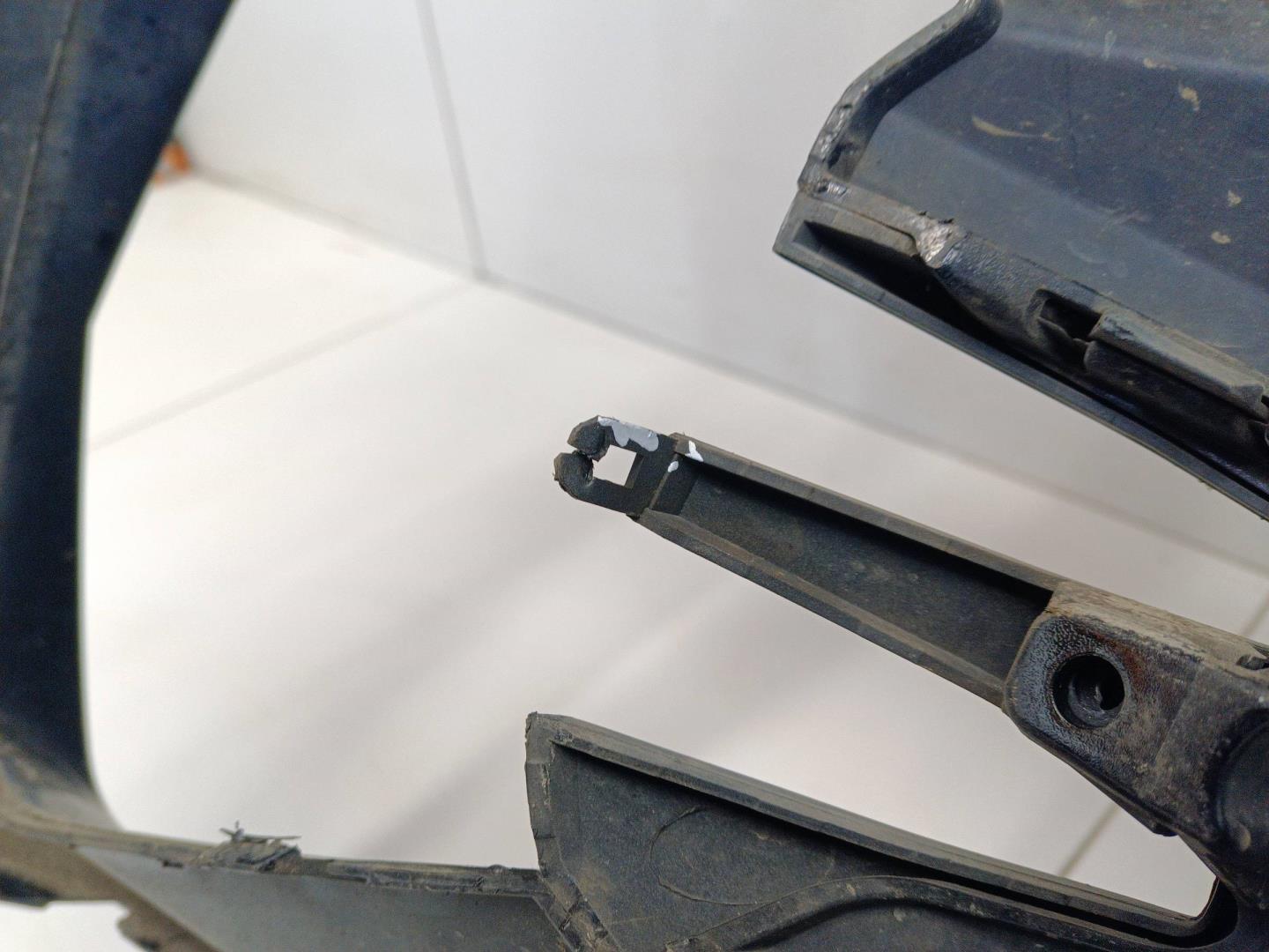 Состояние детали хорошее. Цвет черный. Следы эксплуатации, потёртости и царапины. Отломано крепление. Деформация кронштейна. Трещина. Порваны крепления.. Отломано крепление в нижней правой части. Деформация кронштейна и трещина в центральной части, на месте решётки радиатора. Порваны 2 крепления слевой и правой стороны на накладке.. Потребуется ремонт.