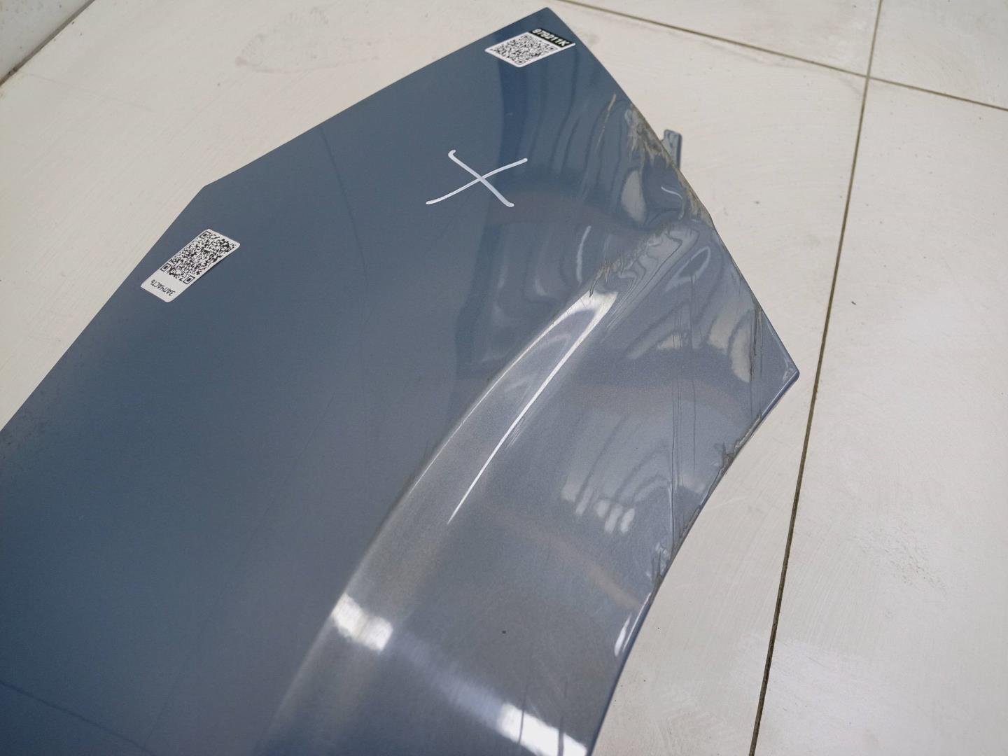 Состояние детали хорошее. Цвет черный. В плёнке. Следы эксплуатации, царапины и потёртости.. Одна крупная вмятина на ребре с притертостью. Загиб нижнего угла. Три тычка.. Требуется ремонт.