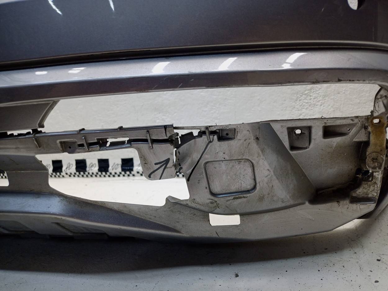 Состояние детали хорошее. Серебристого цвета под парктроники, следы эксплуатации, дефекты пластика на фото. Отсутствуют два крепления. Ремонтопригодно