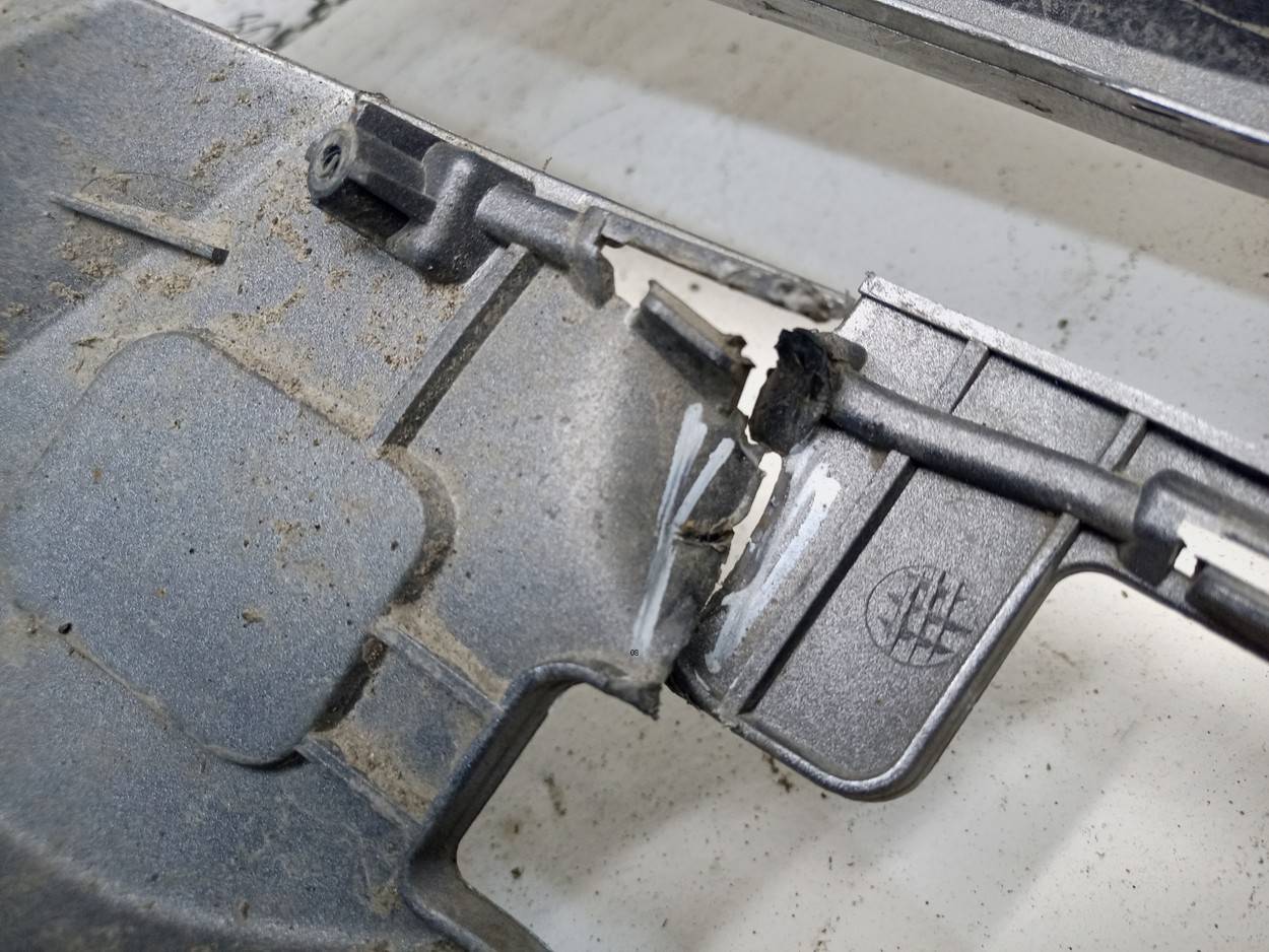 Состояние детали удовлетворительное. Следы эксплуатации, потертости и царапины. Сломано три крепления снизу и одно сверху, на одном верхнем креплении трещина. Потребуется ремонт