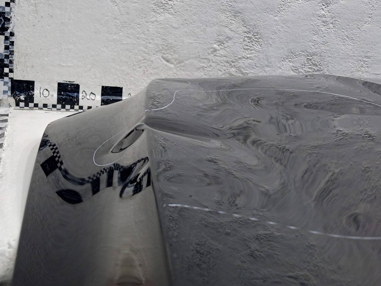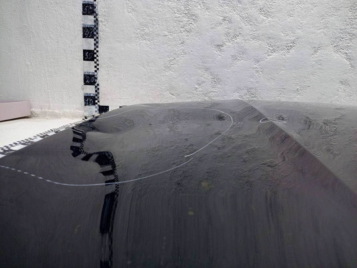 Состояние детали удовлетворительное. Серо синего цвета в пленке. Небольшая вмятина в верхней части у лобового стекла. Потребуется ремонт и покраска