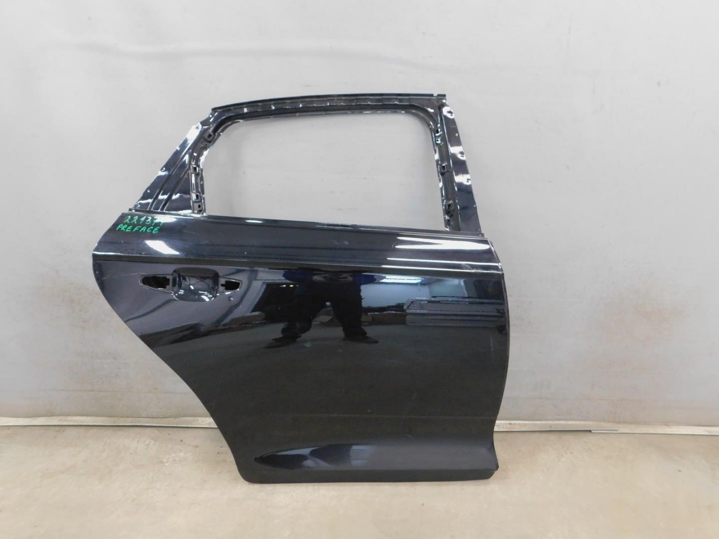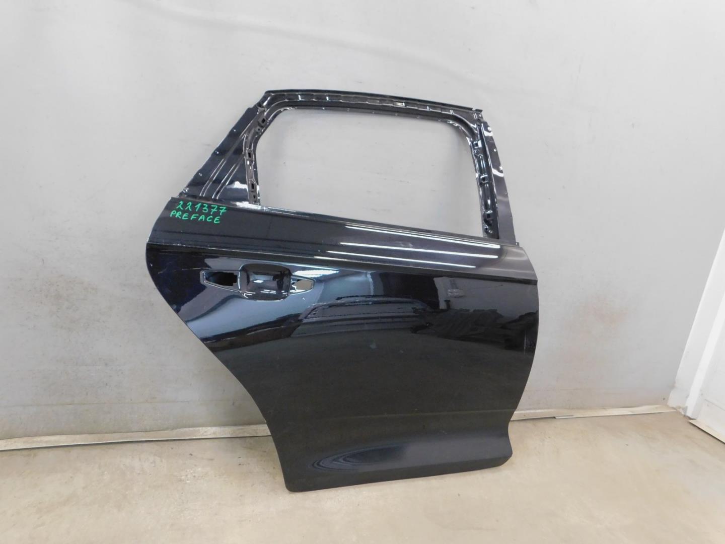 Состояние детали хорошее. Дверь зелёного цвета, вмятины, царапины. Вмятины в левой нижней части двери, немного загнут правый нижний угол, небольшой тычок в правый верхней части двери, тычок на внутренней стороне каркаса внизу, деформация на внутренней части кромки двери двери. Требуется ремонт и покраска