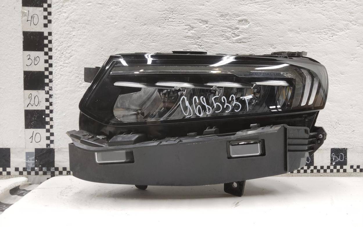 Состояние детали хорошее. Лёгкая потёртость стекла. Трещина на одном верхнем креплении (проклеена). Потребуется незначительный ремонт Фара левая для Geely Tugella (FY11) 2020>