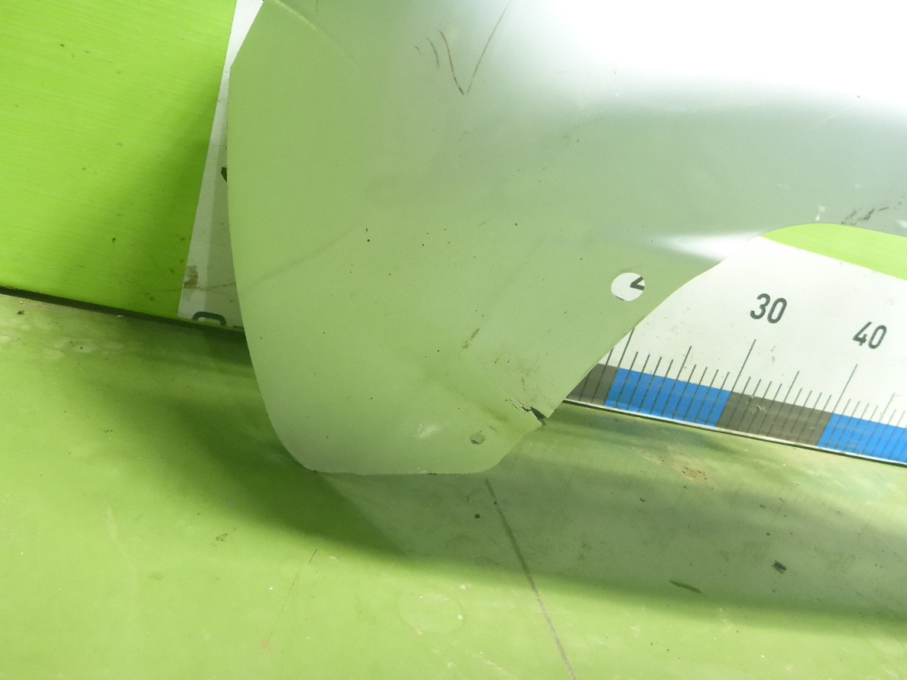 Состояние детали удовлетворительное. Цвет белый, следы эксплуатации, вмятины, повреждены крепления. Царапины потёртости, вмятина в правой части крыла, разорванные крепления, деформации на арке. Требуется ремонт и покраска