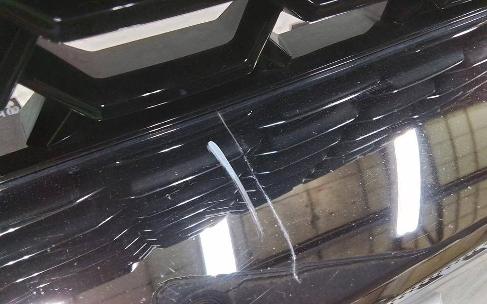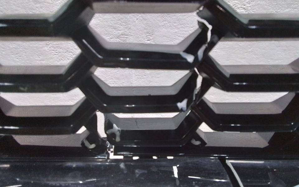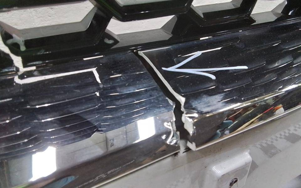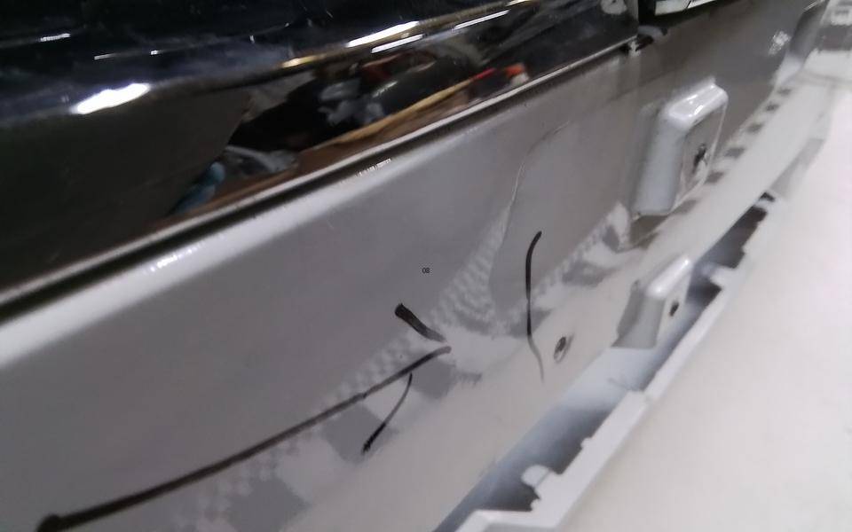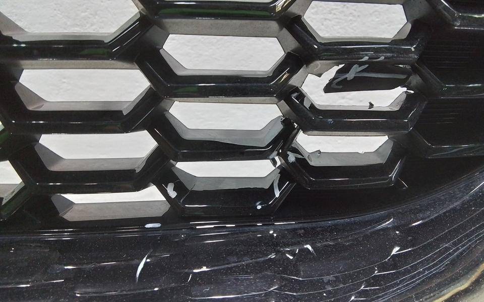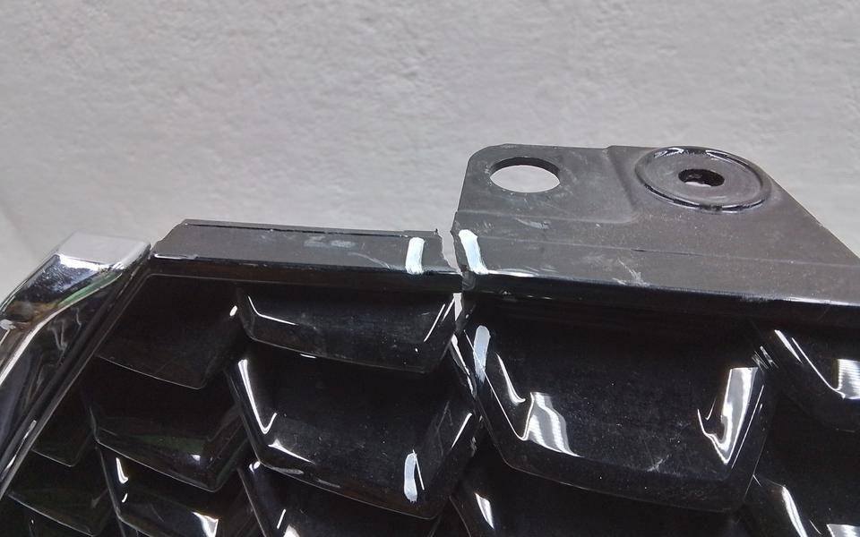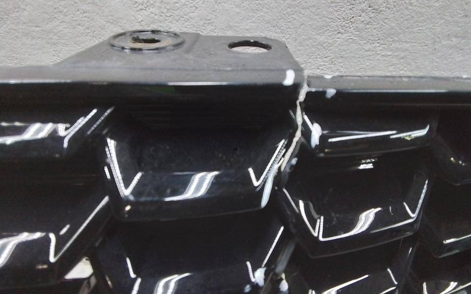 Состояние детали хорошее. Белого цвета, дефект пластика, небольшая вмятина, сколы решётки и хрома. Дефект двух направляющих. Потребуется ремонт