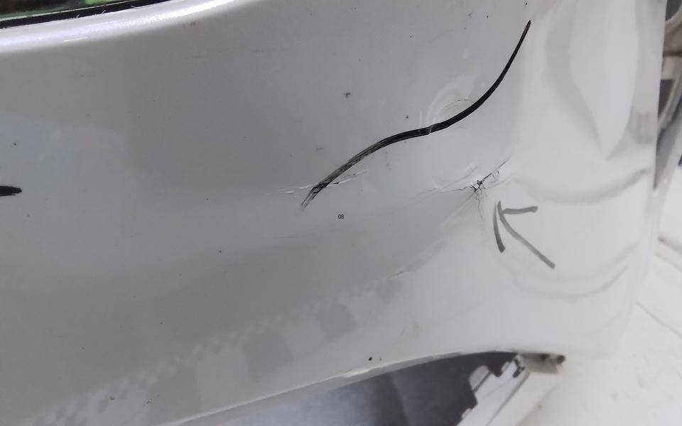 Состояние детали хорошее. Белого цвета, потёртости, царапины. Притёртость с вмятиной в передней части на арке крыла. Потребуется ремонт и покраска