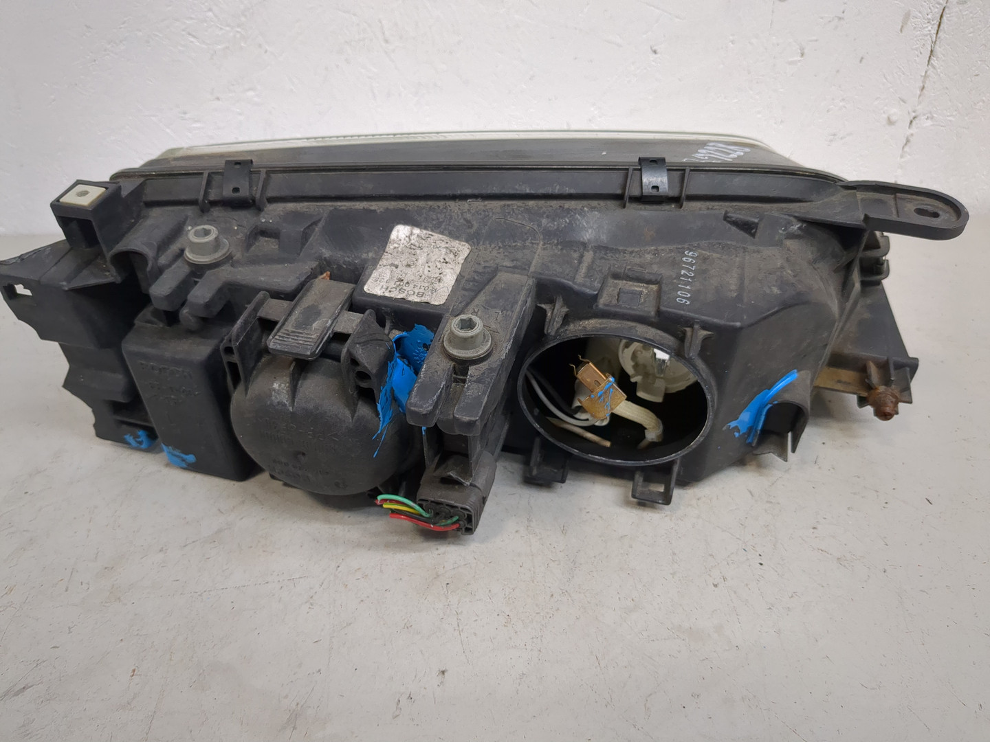 Состояние детали хорошее. Синего цвета, потёртости, в сборе с правым отражателем и накладкой бампера. Дефект одного крепления на полке бампера, основные крепления целые. Потребуется покраска