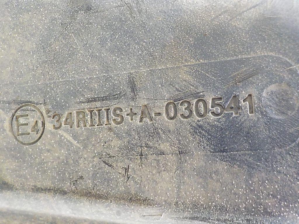 Состояние детали хорошее. Черного цвета, потертости, царапины, в сборе с юбкой. Деформация пластика юбки и бампера слева, крепления целые. Потребуется ремонт и покраска