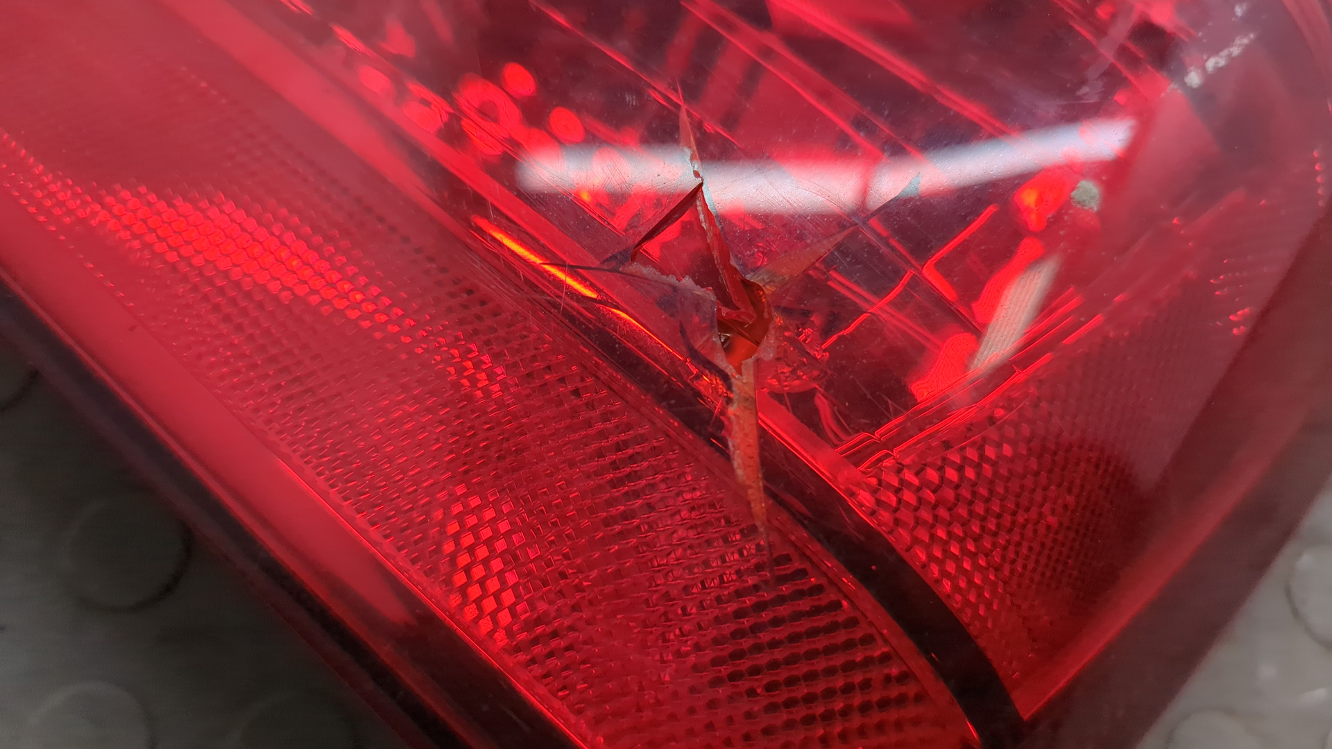 Состояние детали хорошее. Цвет серый. Следы эксплуатации. Царапины и потёртости. Глубокая царапина.. Глубокая царапина слева вверху. Все крепления целые.. Ремонт не требуется.