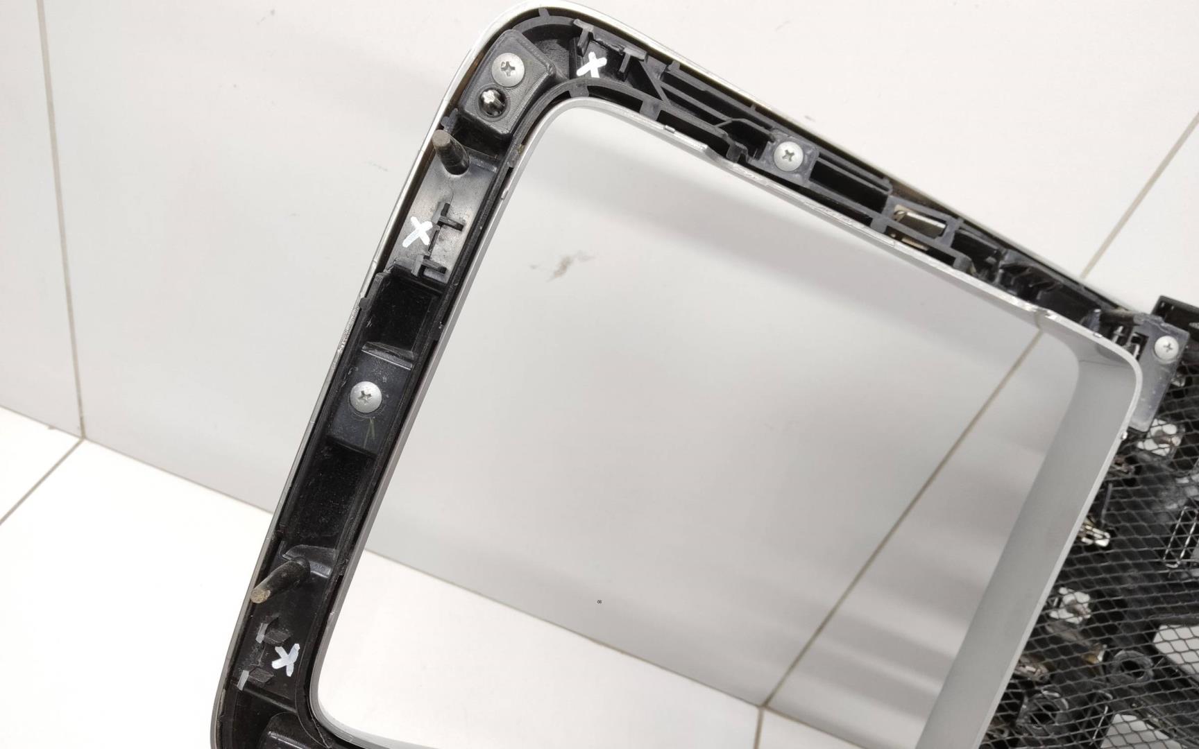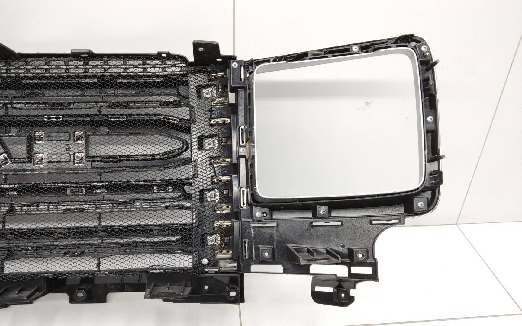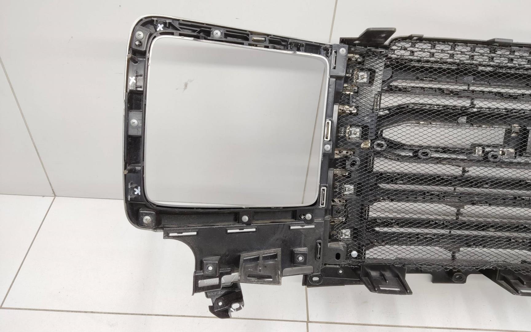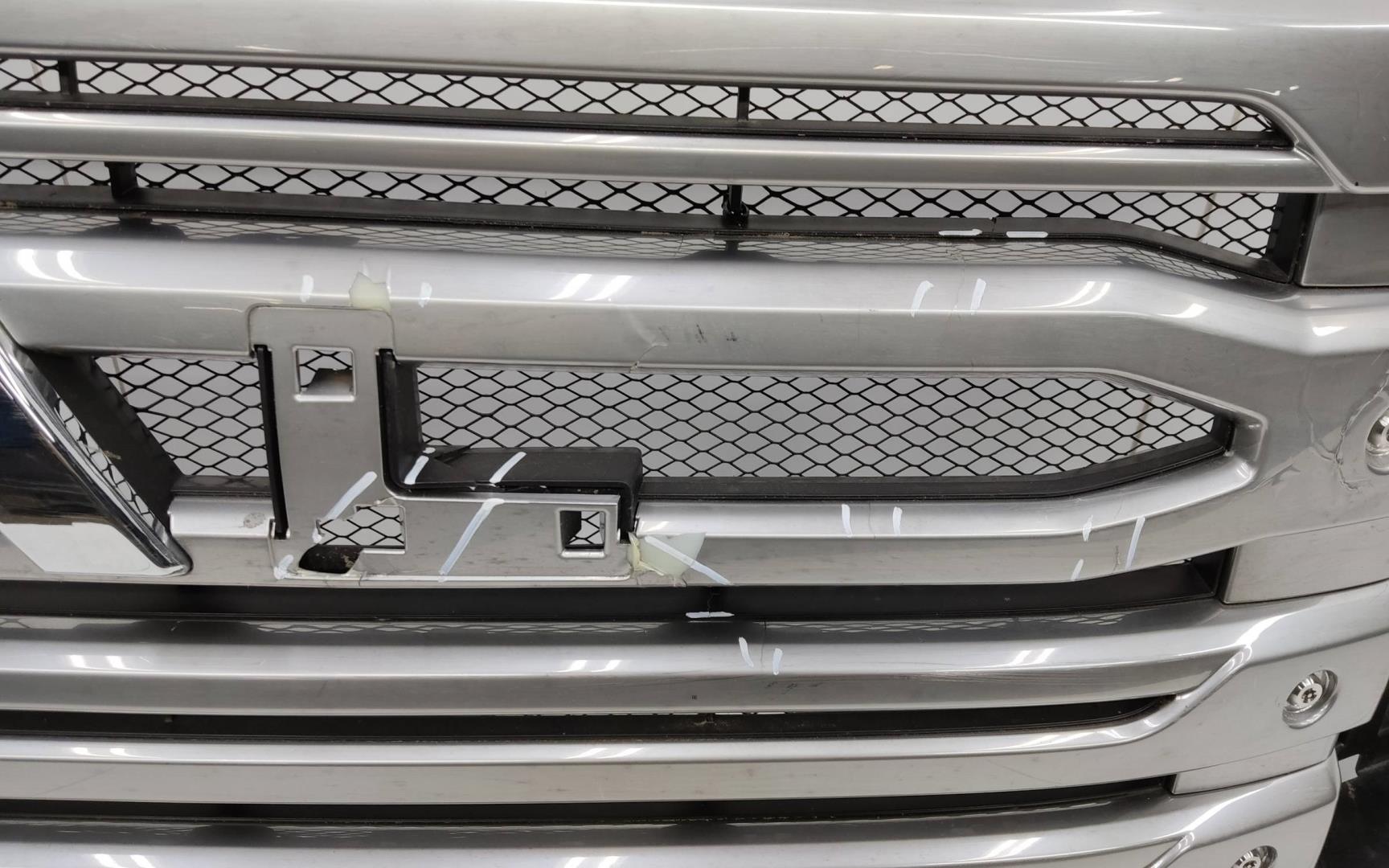 Состояние детали удовлетворительное. Следы эксплуатации, царапины и потёртости.. Трещина на пластике в районе трёх креплений внизу - дефект трёх креплений. Трещина на пластике сверху в районе одного крепления - дефект одного крепления. Дефект одного крепления.Дефект трёх поперечен.. Требуется ремонт.