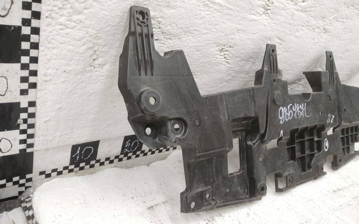 Состояние детали хорошее. Чёрного цвета под парктроники. Небольшие трещины, царапины. Сломано одно крепление под решетку. Потребуется ремонт