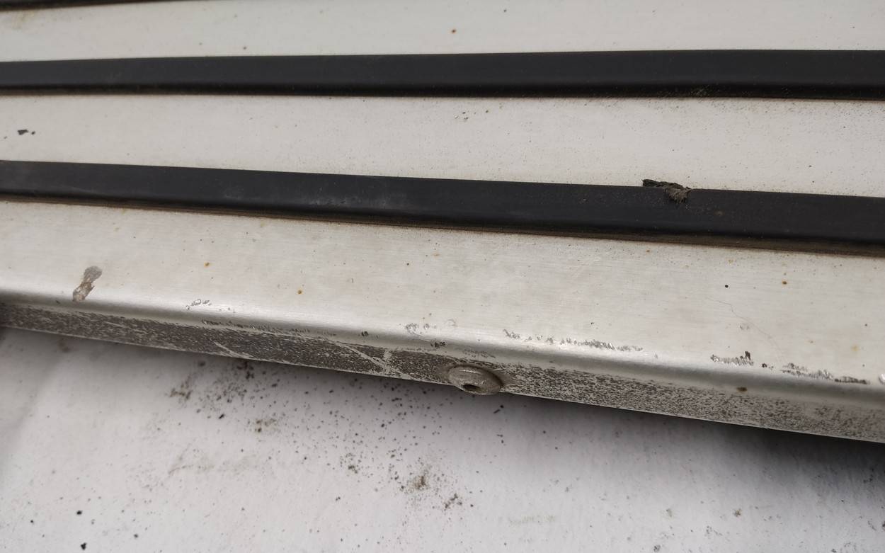 Состояние детали хорошее. Белого цвета, скол ЛКП. Небольшие вмятины в нижней части, подмяты уголки. Потребуется ремонт