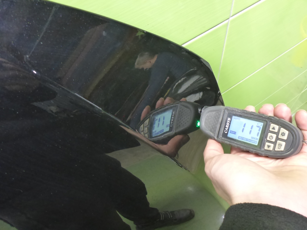 Состояние детали удовлетворительное. Следы эксплуатации , цвет чёрный, толщина ЛКП 120. Царапины и потёртости, тычок по центру, деформация кромки и тычок в передней части капота, складки на внутреннем каркасе справа и слева, отошёл герметик. Потребуется ремонт