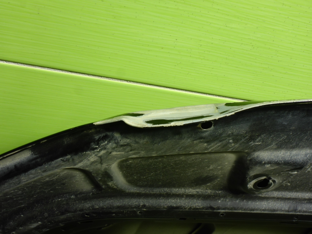 Состояние детали удовлетворительное. Цвет черный. Царапины и потёртости, следы эксплуатации.. Небольшая дырка на бампере. Два крепления сломаны, одна направляющая с дефектом.. Требуется ремонт, возможно установка как есть