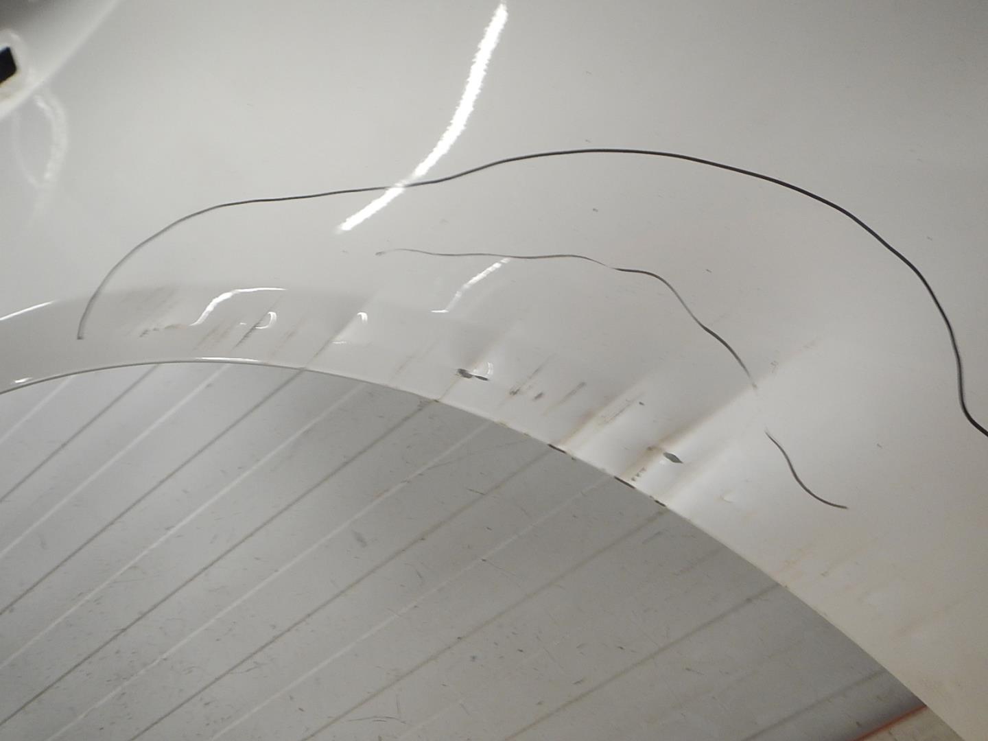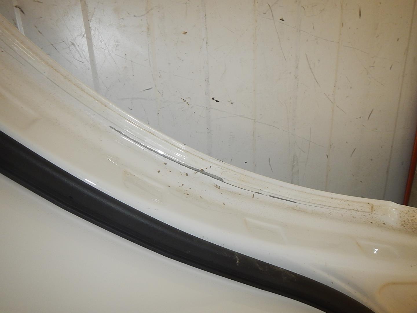 Состояние детали удовлетворительное. Белого цвета в пленке. Загнута кромка спереди справа. Потребуется ремонт и покраска