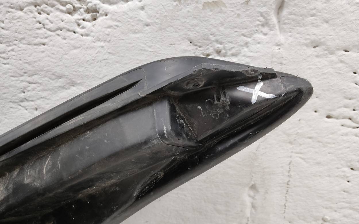 Состояние детали удовлетворительное. Белого цвета, потёртости, царапины. Небольшая вмятинка в нижней части справа, небольшая деформация внутреннего каркаса в этом же месте с обратной стороны, вмятинка на кромке снизу. Потребуется ремонт и покраска
