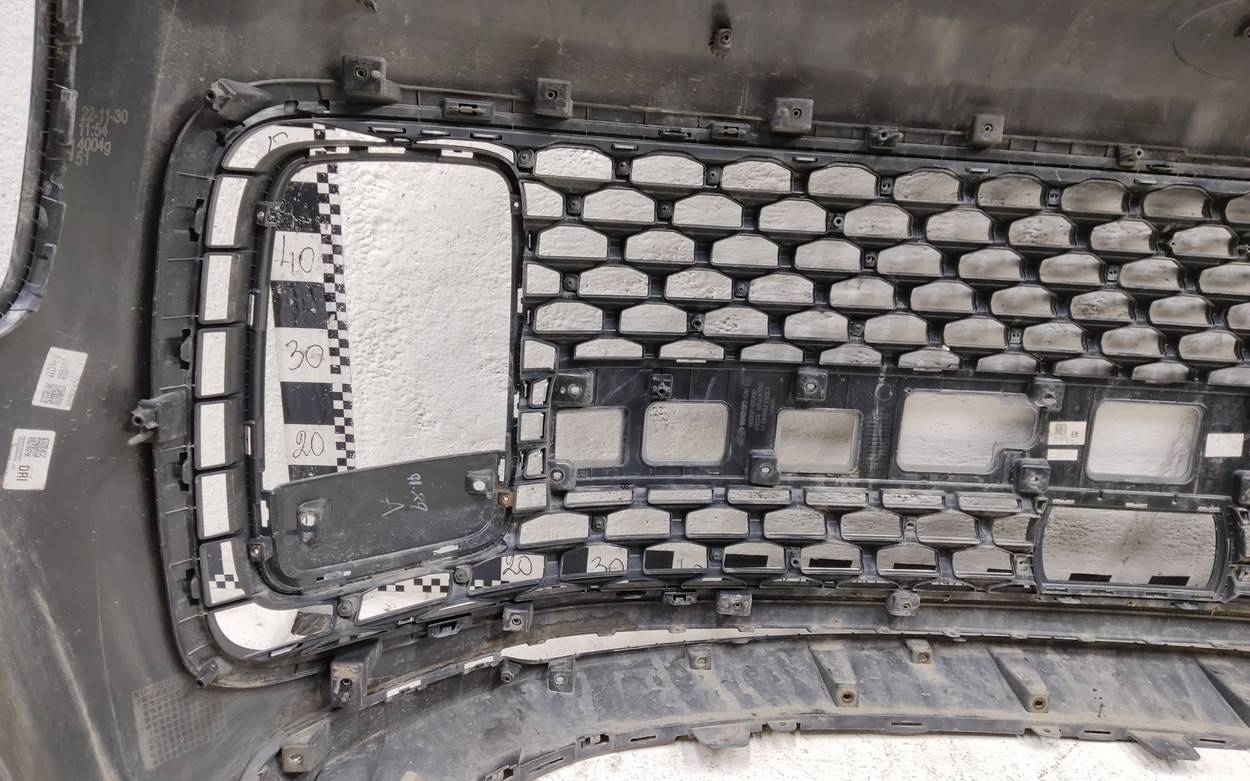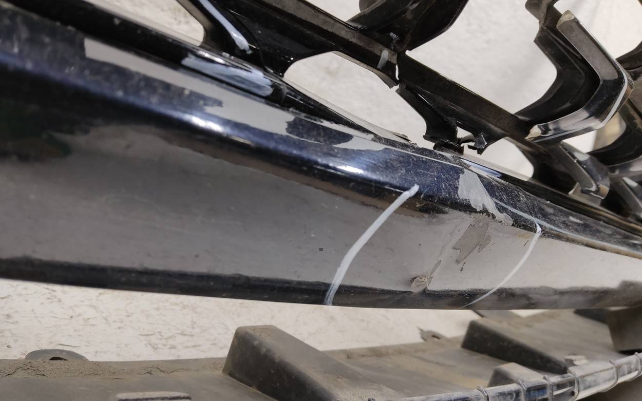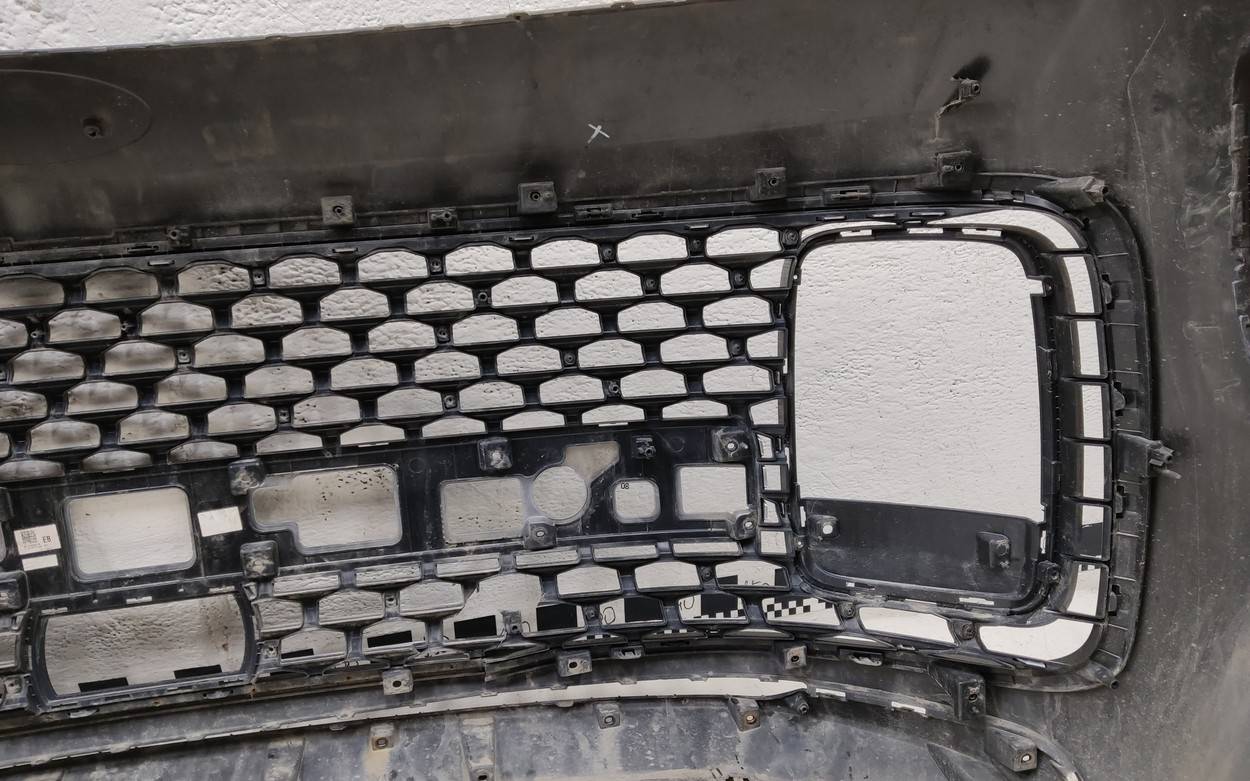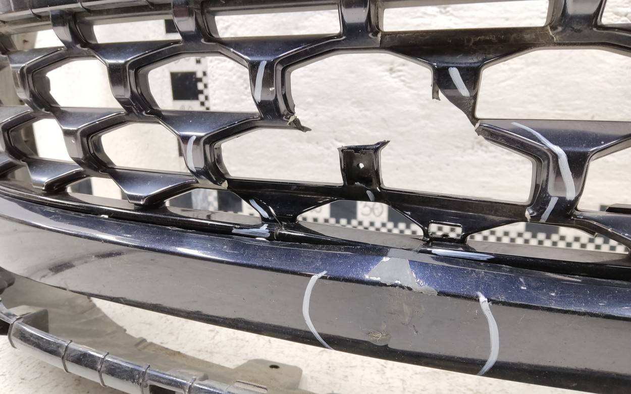 Состояние детали хорошее. Тёмно-синего цвета. Царапины, вмятинка. Скол пластика решетки. Отсутствует одно крепление. Потребуется незначительный ремонт