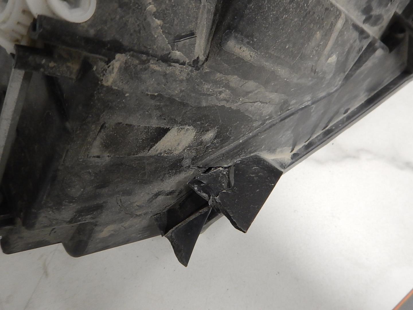 Отсутствует фрагмент (нет куска), Повреждено крепление (трещина, деформация), Сломано 2 крепление, Трещина на корпусе, Царапины