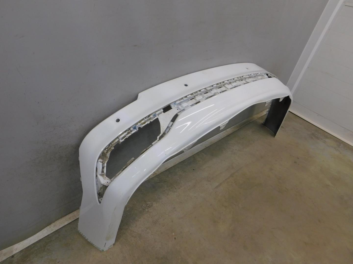 Состояние детали удовлетворительное. Белого цвета, потертости, царапины, в сборе с левой рамкой ДХО. Трещины пластика бампера слева снизу, крепления целые. Потребуется ремонт и покраска