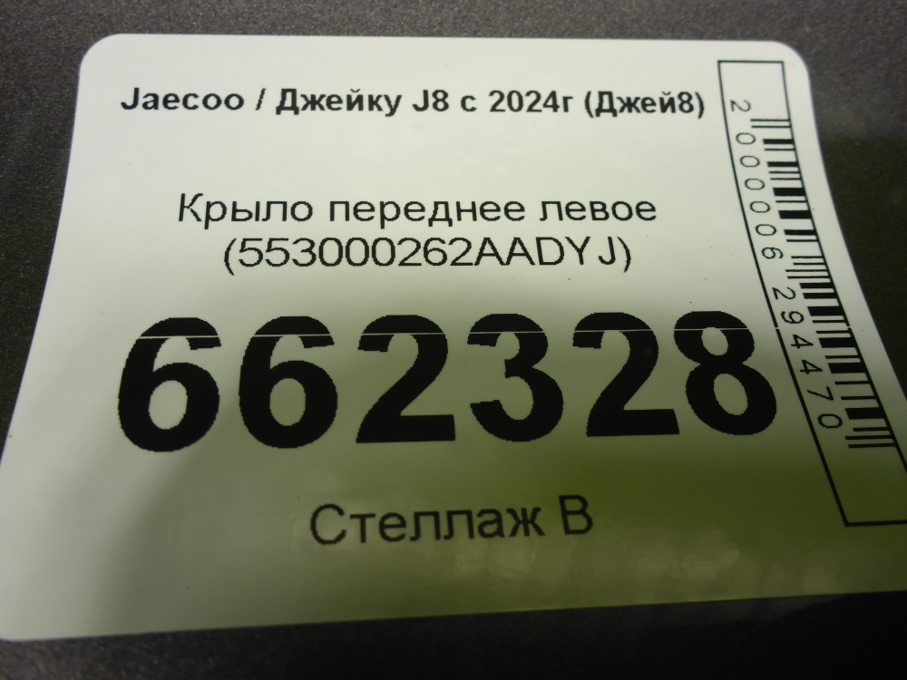 CHERY, Бу оригинал\n\nРасширитель крыла левый передний Jaecoo J8 2024-нв T26 609001167AADQJ\nарка переднего левого крыла\nнакладка крыла переднего водительская сторона\n\nЖАЭКО ДЖИ8 / ЖАЭКОО ДЖЭЙ 8 609001167АА\n\nГод установки: 2024 2025