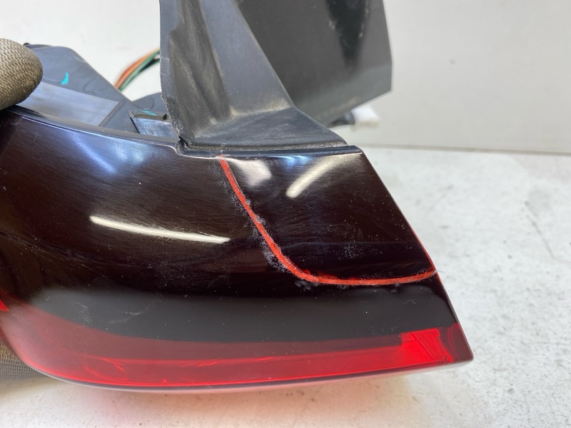 Состояние детали удовлетворительное. Скол по кромке стекла, небольшая трещина под рамкой. Царапинки на видимой поверхности. Отсутствует одно крепление. Потребуется ремонт