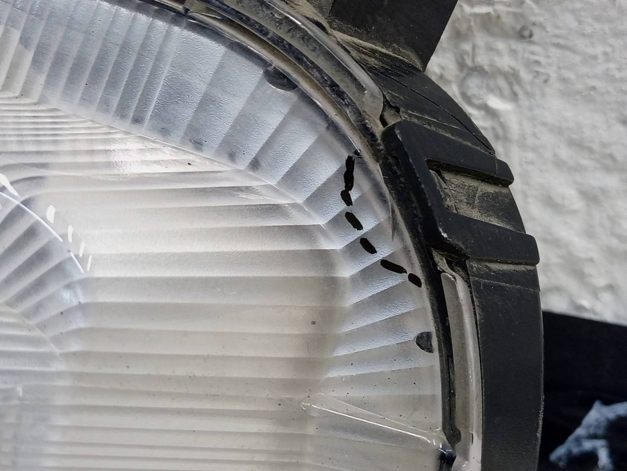 Состояние детали плохое. Следы эксплуатации, дефекты пластика. Трещина верхней части корпуса, дефект 3 креплений. Ремонт корпуса и креплений