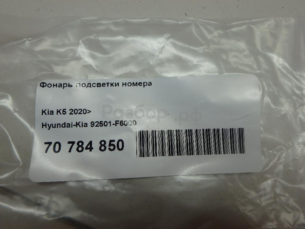 ЛЕВЫЙ 92501F6000 Фонарь подсветки номера для Kia K5 (DL) 2019>