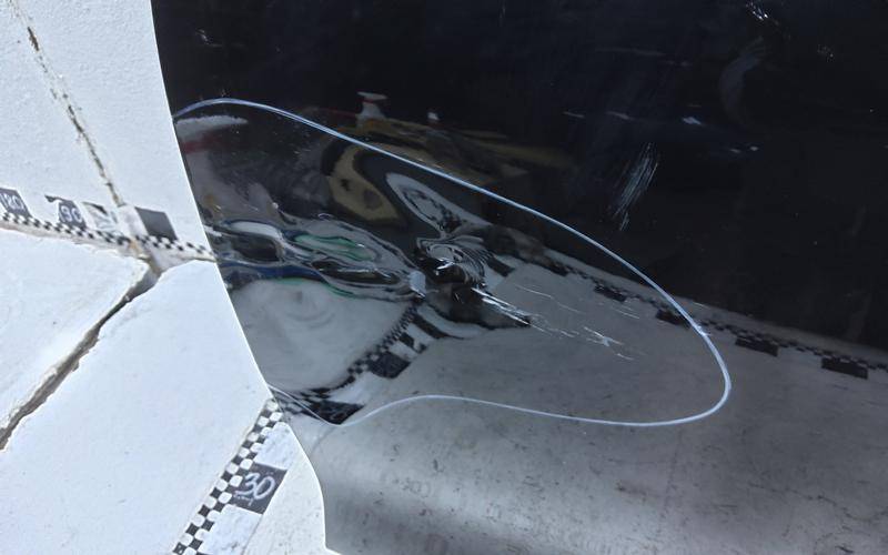 Состояние детали удовлетворительное. Трещина в стекле. Крепления целые. Потребуется ремонт