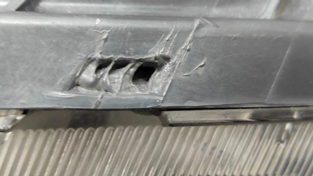 Состояние детали хорошее. Трещинки по нижнему кронштейну (под бампером), небольшие потёртости пластика и хрома на фото. Дефект одного нижнего крепления. Потребуется незначительный ремонт